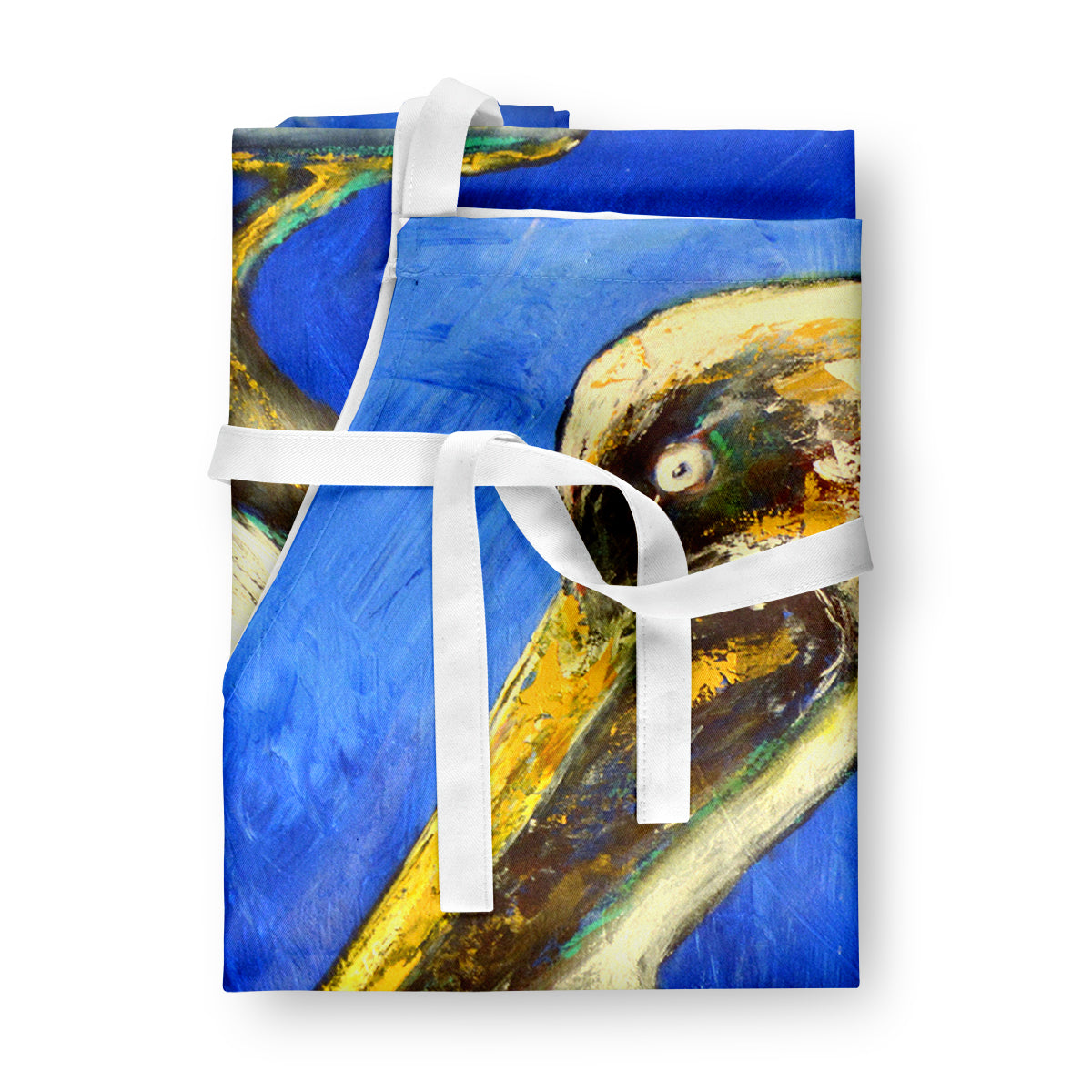 Elevate your cooking, baking, and grilling experiences with our versatile Kitchen or BBQ Apron. This Bib Style apron isn't just limited to culinary activities - it also serves as an excellent baking apron, artist apron, server apron, gardening apron, or even a dog grooming apron. The apron showcases vibrant full-color artwork contributed by one of our talented artists, bringing a dash of style to your daily tasks. With dimensions of approximately 27"W x 30"H, it provides ample coverage to protect your clothing from spills and splashes. Our apron is meticulously crafted from 100% Ultra Spun Polyester, known for its durability and lightweight nature. The apron comes with white tie straps, ensuring a comfortable and adjustable fit for all. It's a perfect choice for kitchen apron enthusiasts, whether you are a woman or a man. Designed for easy maintenance, this apron is fully machine washable. The quick-drying polyester material actively reduces staining, keeping your apron looking fresh and new for longer. Our beautifully designed apron isn't just a functional kitchen accessory - it's a fashion statement in the culinary world!