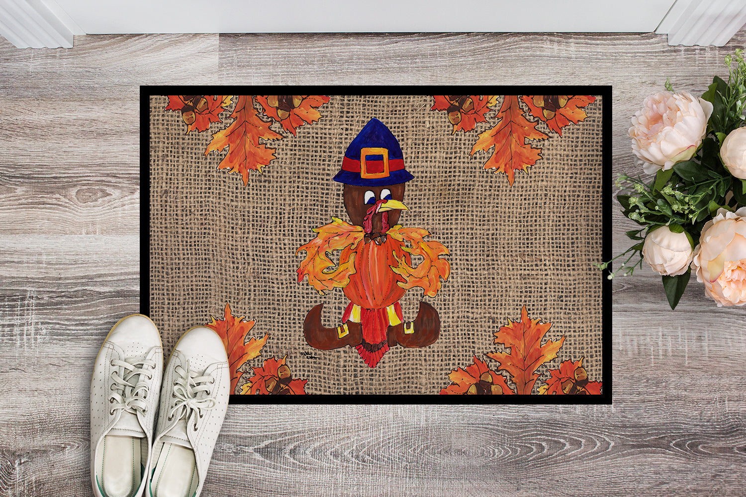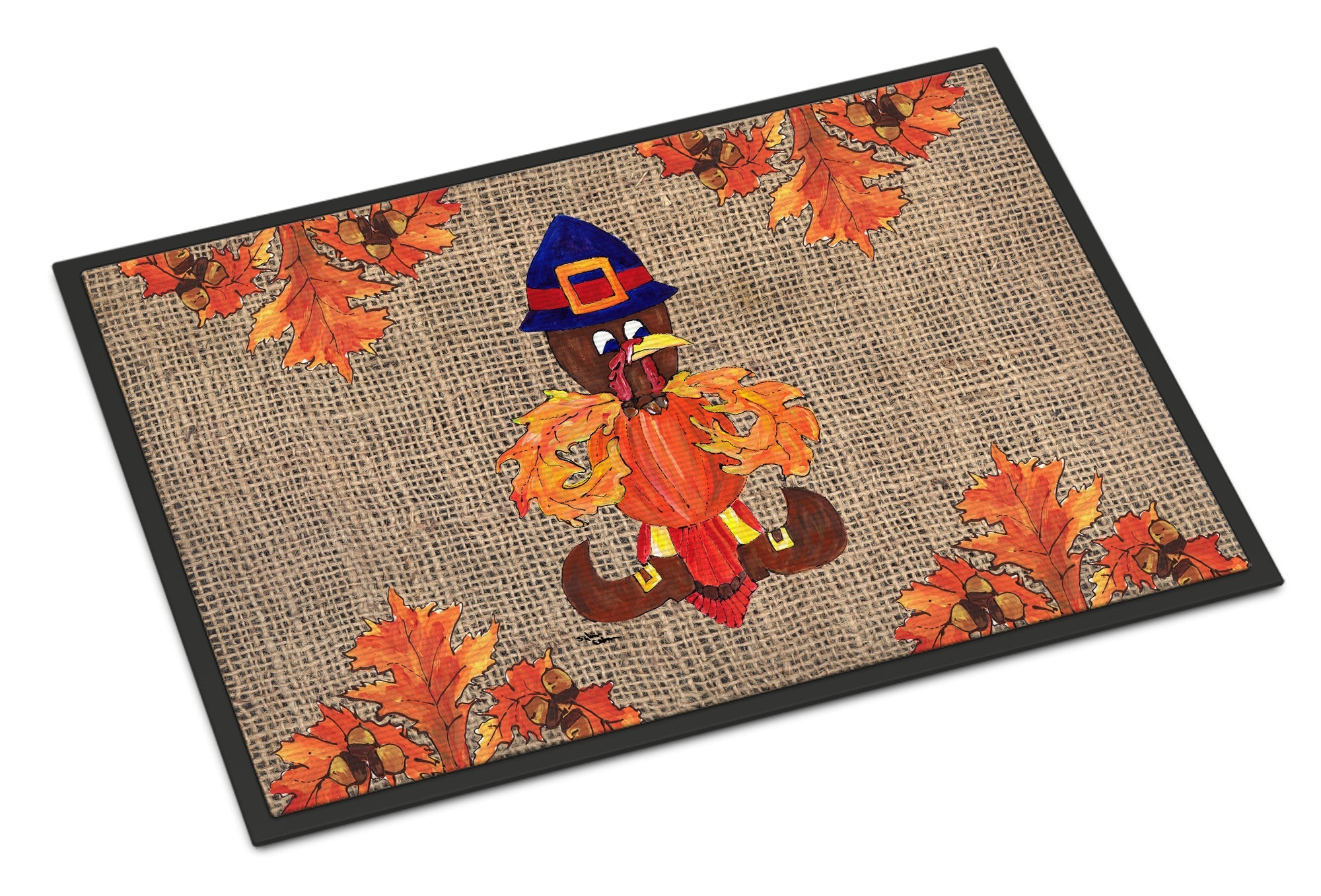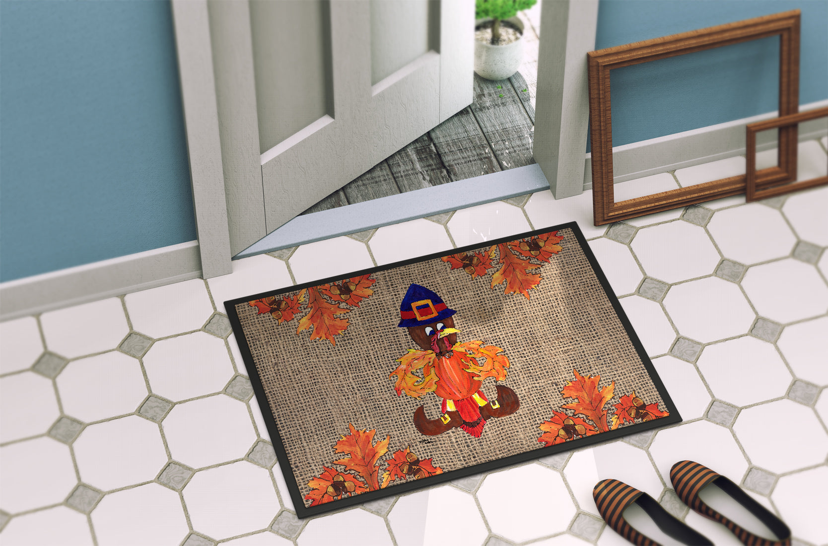 Decorate your space with our Thanksgiving artwork on a Doormat. Welcome your guests in style with our Artwork Door Mat, designed to withstand almost any weather condition. This mat, measuring approximately 24 by 36 inches, is held together by durable black binding tape. Its top layer, composed of polyester felt, is dyed with the eye-catching image you see on the mat. A few layers below provide the mat with stability, while its rubber bottom is stamped to help prevent slipping and ensures safety. Our mat works wonderfully as both an indoor or outdoor door mat. For cleaning, simply hose it off with water or use a power washer - no need for any cleaner that produces suds. Avoid scrubbing with a brush, instead, opt for the vacuum on floor setting. Designed manufactured and printed in the USA, this mat is a perfect addition to your porch, outdoor kitchen, entryway, or any indoor space. Its unique design makes it a charming decorative rug that greets your guests and adds a stylish touch to your home decor.