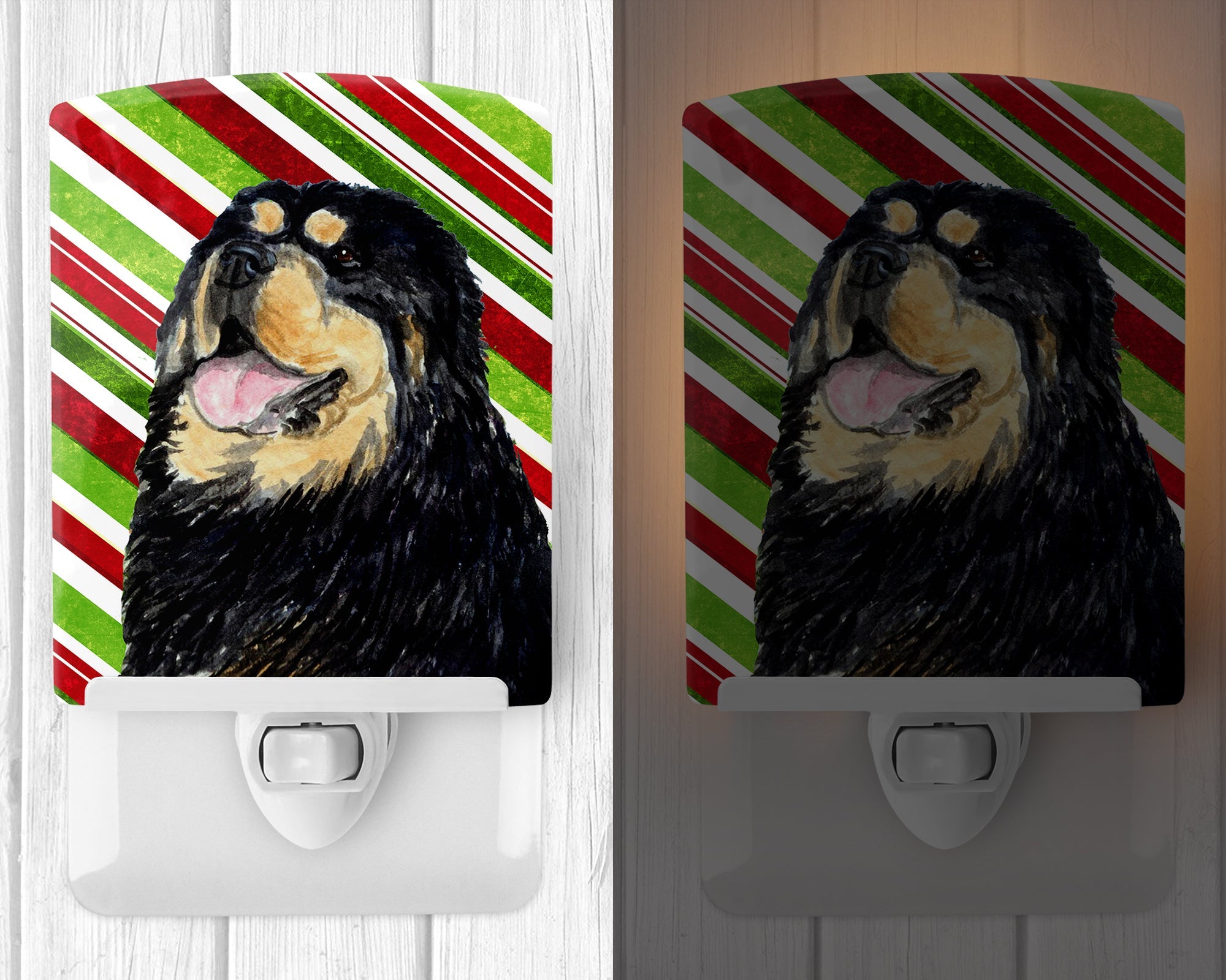 Decorate your space with our Christmas Mastiff artwork on a Night Light. Introduce a splash of artistic flair and subtle illumination to your space with the Decorative Ceramic Night Light from Caroline's Treasures. Perfect for any room, this night light seamlessly blends functionality with an aesthetic appeal, offering a stylish solution to brighten up dark corners of your home or office. Boasting a six-inch high by four-inch wide ceramic tile at the front, it showcases vivid, full-color artwork from distinguished artists, transforming a simple utility into a vibrant art piece. The artwork is securely encased in a robust metal holder, ensuring durability and longevity. Two screws are provided to firmly affix the tile into the holder. The holder extends three inches deep, housing an included bulb that emits a soft, welcoming glow. This product meets all safety standards, as evidenced by its UL approval. Proudly made in the United States from imported components, this Decorative Ceramic Night Light is not just a functional device; it's a statement piece that enhances the ambiance of your surroundings.
