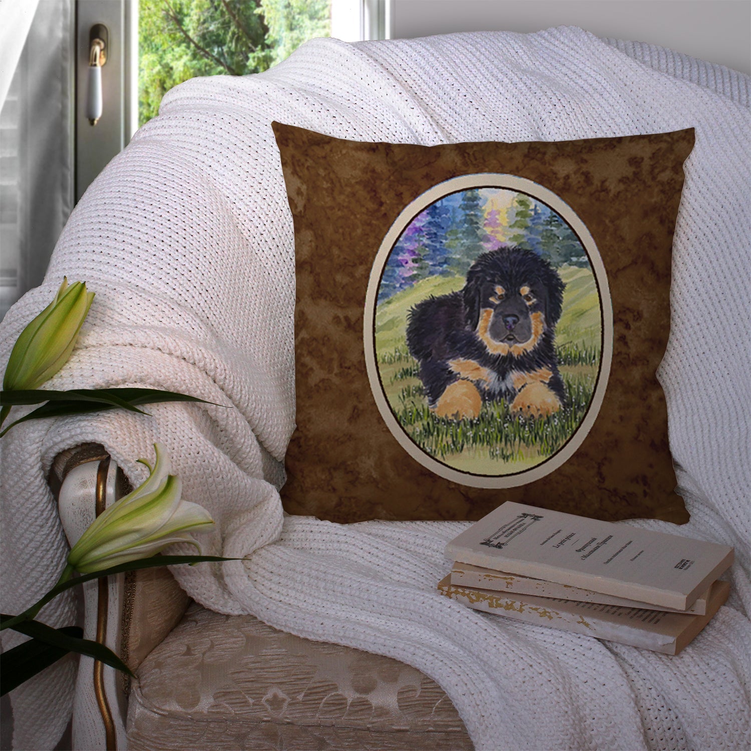 Decorate your space with our Tibetan Mastiff artwork on a Pillow. Add a touch of vibrancy and comfort to your outdoor seating with Caroline's Treasures Fabric Decorative Pillow. Measuring approximately 14 inches by 14 inches, this outdoor pillow is crafted to elevate the appeal of your patio furniture, infusing it with vivid color and artistic flair. The pillow includes a 100% Polyester Fabric sham filled with a quality pillow form to provide superior comfort. Innovatively made from our brand new material, specifically woven for its water resistance, this pillow is designed for durability. The soft canvas fabric offers versatility in use, fit for your indoor couch or your outdoor patio, porch, or veranda. The fabric is dyed with colorfast dyes built for resilience against weather conditions, ensuring the pillow retains its beauty over time. Constructed by sewing three fabric pieces to create a sham, the polyester insert is then nestled inside to form the pillow, resulting in an overstuffed pillow that maintains its shape. Both the sham and the pillow insert are proudly made in the United States. As the pillows are handcrafted, there may be minor variations in size, further enhancing their unique charm. Experience comfort in style with Caroline's Treasures Fabric Decorative Pillow.