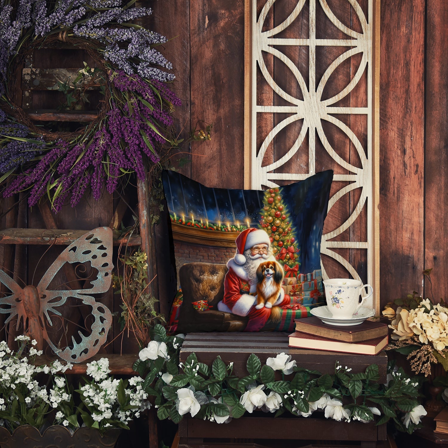 Throw Pillow featuring breed specific Tibetan Spaniel artwork. Celebrate Christmas with this Christmas Pillow. Revitalize your outdoor or indoor living space with Caroline's Treasures 18x18 Fabric Decorative Pillow. With a generously sized dimension of approximately 18 inches by 18 inches, this pillow makes a comfortable and aesthetic addition to any seating area. Made from a unique, water-resistant material developed by Caroline's Treasures, the pillow sham is 100% polyester fabric that's durable and ready to weather any condition. Its vibrant, full-color artwork will not fade over time as it is dyed with color-fast dyes. Whether you place it on your patio furniture, porch, veranda, or indoor couch, its soft canvas fabric ensures a cozy experience. The pillow is handcrafted in the United States, featuring a sham created from three pieces of fabric and a polyester insert for enduring shape and overstuffed comfort. Despite being robustly built to endure the outdoors, it is as soft and snug as your favorite indoor cushions. Please note, as all our pillows are handmade, sizes may vary slightly, adding to the charm of this unique decorative item.