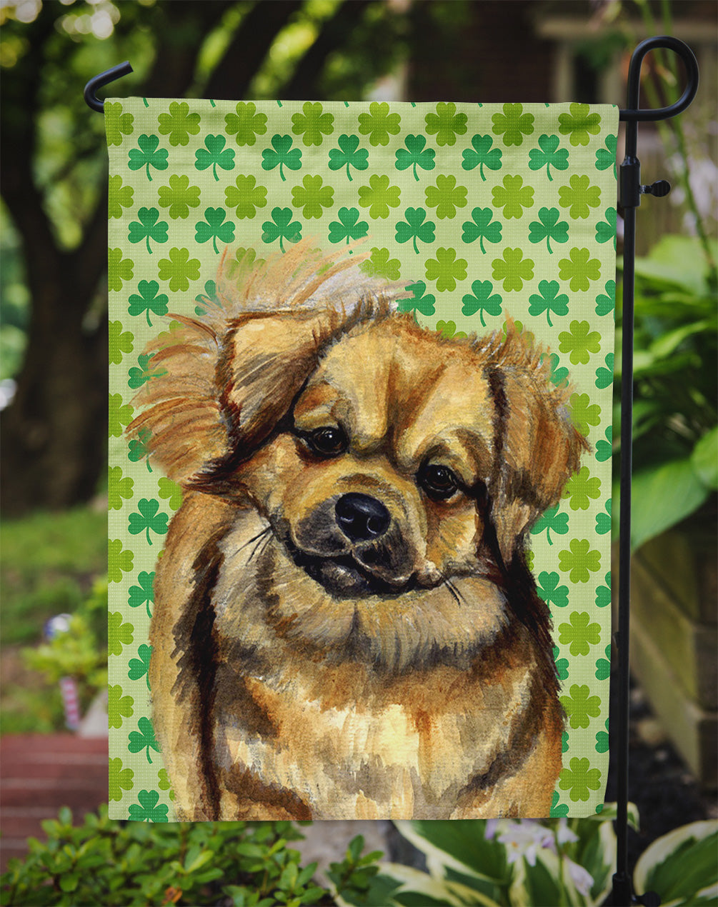 Decorate your space with our St Patrick's Day Tibetan Spaniel artwork on a Garden Flag. Enhance the beauty of your garden, patio, or yard with Caroline's Treasures Decorative Garden Flag, proudly made in the USA. Crafted from two pieces of thick, double-sided polyester fabric, this 2-ply garden flag is designed to withstand various weather conditions, making it water-resistant and weatherproof. Featuring correctly readable words on both sides, this garden flag offers a delightful visual experience from any angle. With its heavier weight, it stands out among other garden flags, ensuring stability and durability even in wind, rain, and snow. Measuring approximately 11 1/4 inches by 15 1/2 inches, this flag allows you to personalize your outdoor decor. It comes with a 1 1/2-inch sleeve sewn in, allowing easy attachment to any standard garden flag stand or garden size porch hanger (sold separately). Make a statement in your outdoor space with Caroline's Treasures Decorative Garden Flag, a vibrant and high-quality flag that adds color and personality to your surroundings. Proudly made in the USA, it's a symbol of quality craftsmanship and attention to detail.