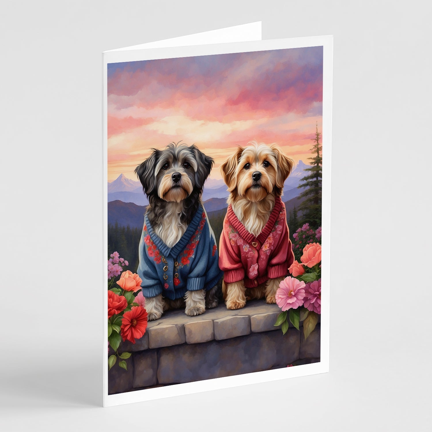 Decorate your space with our Valentine's Day Tibetan Terrier artwork on a . Celebrate special moments with Caroline's Treasures Printed Greeting Card Pack. This pack includes eight beautifully folded 5x7 cards, accompanied by eight matching white envelopes. With blank interiors, these cards provide ample space for your personalized messages and heartfelt holiday greetings. Each card features captivating full-color artwork, meticulously printed in our facility on high-quality 80 lb cover stock or 216 GSM. The super smooth finish of the white cards enhances the visual impact of the artwork, creating a truly stunning presentation. Designed by our talented in-house artists or licensed artists, the artwork on these cards showcases their creativity and attention to detail. From vibrant illustrations to captivating designs, each card tells its own unique story. Whether it's for birthdays, anniversaries, holidays, or any special occasion, Caroline's Treasures Greeting Card Pack is the perfect way to convey your heartfelt sentiments. Share joy, love, and warm wishes with these exquisite cards and make every moment unforgettable.