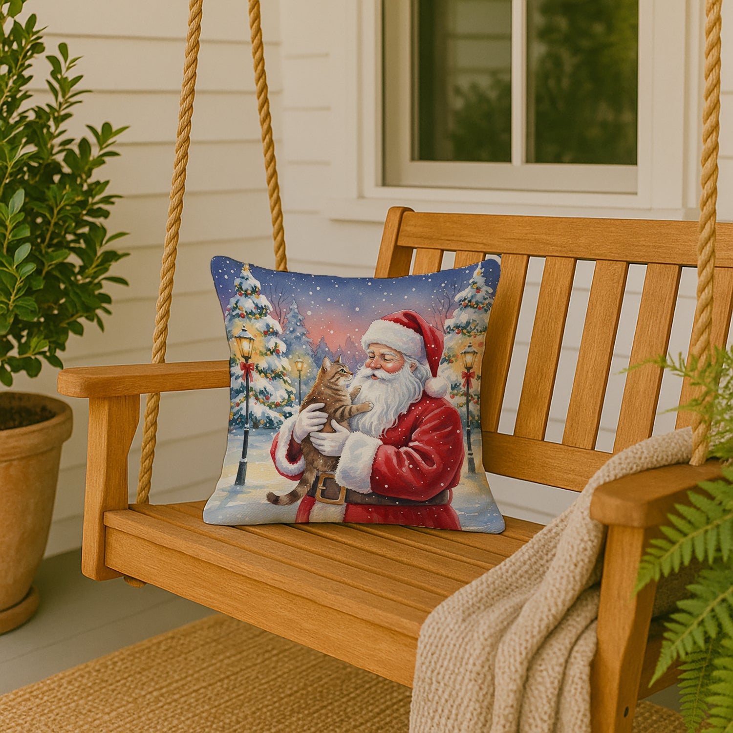 Throw Pillow featuring breed specific Ticked Tabby Brown Cat artwork. Celebrate Christmas with this Christmas Pillow. Revitalize your outdoor or indoor living space with Caroline's Treasures 18x18 Fabric Decorative Pillow. With a generously sized dimension of approximately 18 inches by 18 inches, this pillow makes a comfortable and aesthetic addition to any seating area. Made from a unique, water-resistant material developed by Caroline's Treasures, the pillow sham is 100% polyester fabric that's durable and ready to weather any condition. Its vibrant, full-color artwork will not fade over time as it is dyed with color-fast dyes. Whether you place it on your patio furniture, porch, veranda, or indoor couch, its soft canvas fabric ensures a cozy experience. The pillow is handcrafted in the United States, featuring a sham created from three pieces of fabric and a polyester insert for enduring shape and overstuffed comfort. Despite being robustly built to endure the outdoors, it is as soft and snug as your favorite indoor cushions. Please note, as all our pillows are handmade, sizes may vary slightly, adding to the charm of this unique decorative item.