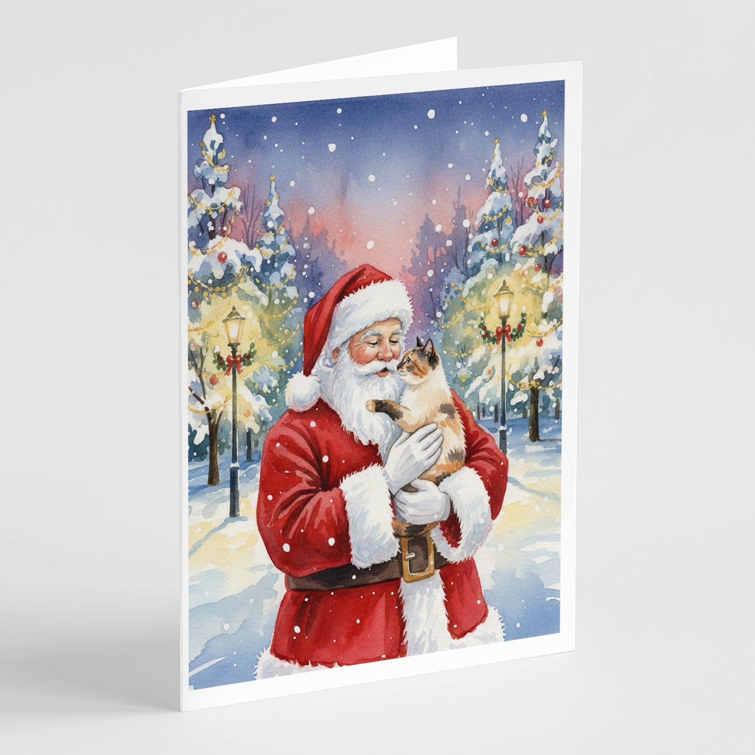 Greeting Cards Pack of 8 featuring breed specific Tortie Point Cat artwork. Celebrate Christmas with this Christmas . Celebrate special moments with Caroline's Treasures Printed Greeting Card Pack. This pack includes eight beautifully folded 5x7 cards, accompanied by eight matching white envelopes. With blank interiors, these cards provide ample space for your personalized messages and heartfelt holiday greetings. Each card features captivating full-color artwork, meticulously printed in our facility on high-quality 80 lb cover stock or 216 GSM. The super smooth finish of the white cards enhances the visual impact of the artwork, creating a truly stunning presentation. Designed by our talented in-house artists or licensed artists, the artwork on these cards showcases their creativity and attention to detail. From vibrant illustrations to captivating designs, each card tells its own unique story. Whether it's for birthdays, anniversaries, holidays, or any special occasion, Caroline's Treasures Greeting Card Pack is the perfect way to convey your heartfelt sentiments. Share joy, love, and warm wishes with these exquisite cards and make every moment unforgettable.