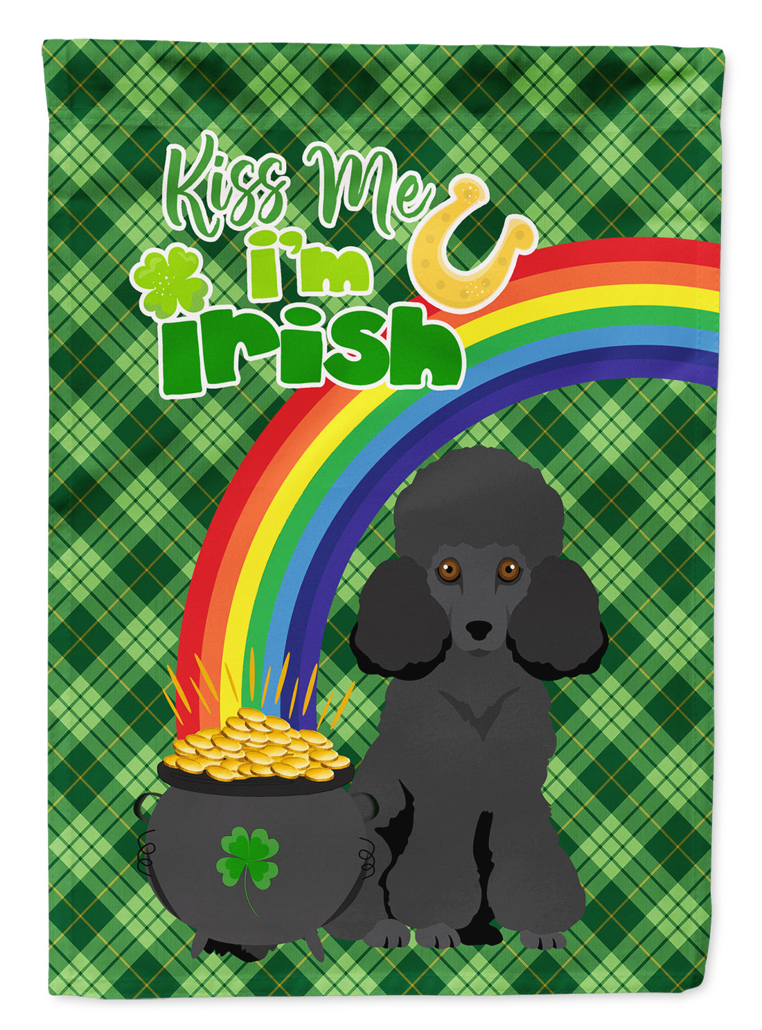 Toy Black Poodle St. Patrick's Garden Flag – "Kiss Me I’m Irish" with Pot of Gold & Rainbow