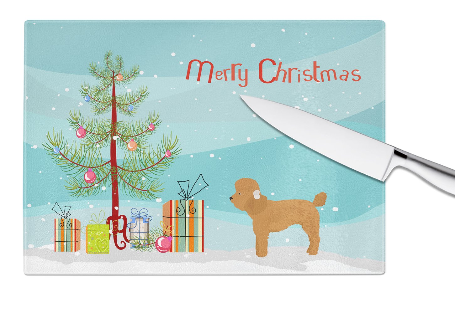 Decorate your space with our Christmas Poodle artwork on a Cutting Board. Introduce your kitchen to the vibrant, large Decorative Glass Cutting Board from Caroline's Treasures. Crafted from resilient tempered glass, this board is not only a utilitarian necessity but also a colorful art piece. With its generous dimensions of 15 inches in height and 12 inches in length, it offers ample space for all your cutting needs. Every piece showcases captivating artwork from distinguished artists, bringing an aesthetic edge to your kitchen. Beyond its attractive design, this cutting board ensures your countertop stays pristine and unscathed, owing to its heat-resistant properties. Engineered with user convenience in mind, it features non-skid feet for stability, and rounded corners for additional safety. Its robust construction renders it virtually unbreakable, guaranteeing longevity. The board comes with protective feet bumpers, maintaining its position during use. This product is recommended to be hand washed only. Proudly printed and assembled in the United States, this cutting board exemplifies superior craftsmanship. With Caroline's Treasures' Decorative Glass Cutting Board, you're investing in a blend of functionality and artistic flair.