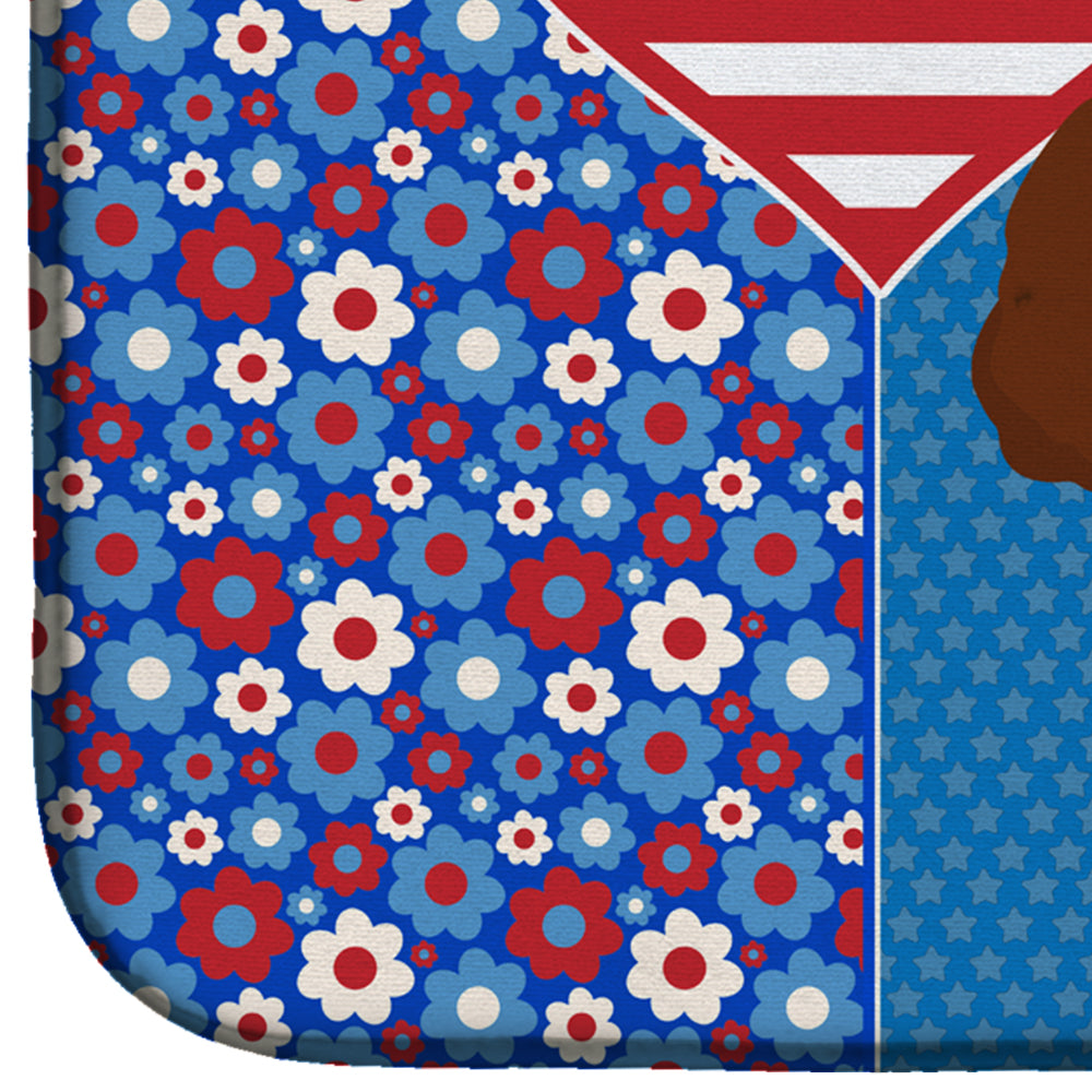 Decorate your space with our Poodle artwork on a Dish Drying Mat. Say goodbye to messy countertops and soggy dish towels with our innovative dish drying mat. Our high-quality dish drying pad is designed to keep your countertops dry while offering a stylish and efficient solution. Whether you're air drying dishes, glasses, stemware, silverware, pots, pans, bottles, or even fruits and vegetables, our dish mat is the perfect choice. The 14 inches x 22 inches size fits most counters and dish drying racks, and the non-slip design ensures stability. Made with water-absorbent polyester and a polyurethane foam insert, our dish drying mat is not only functional but also durable. It's machine washable and printed in the USA for long-lasting use. The beautiful artwork adds flair to your kitchen decor, making it a perfect housewarming gift or present for any occasion. Upgrade your kitchen experience with our absorbent and versatile dish drying mat.
