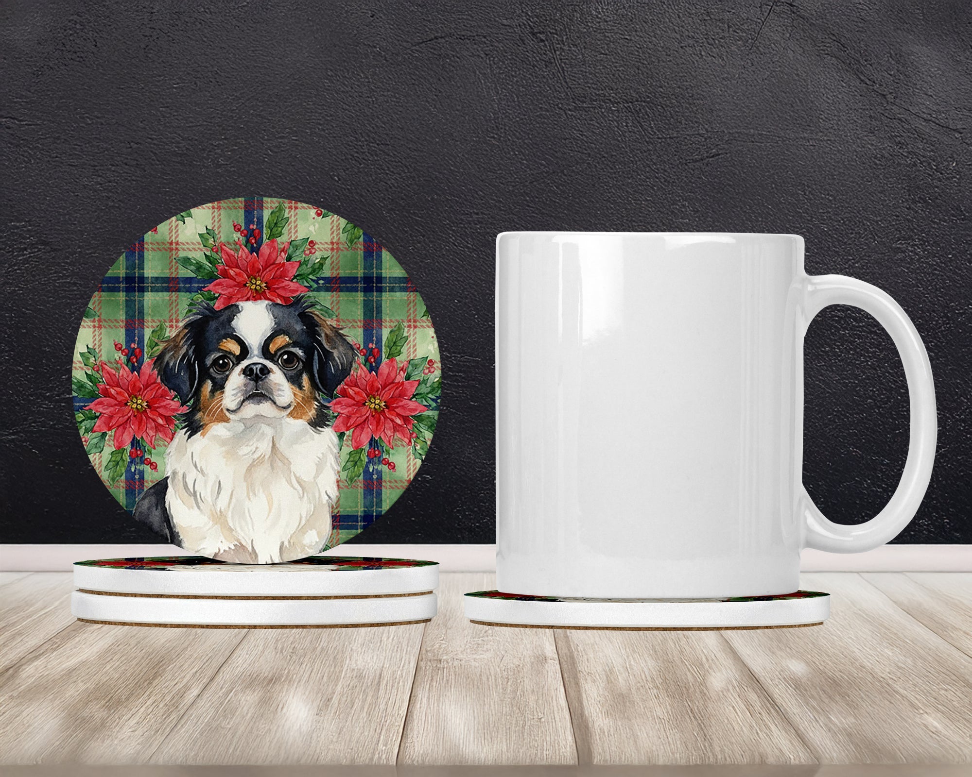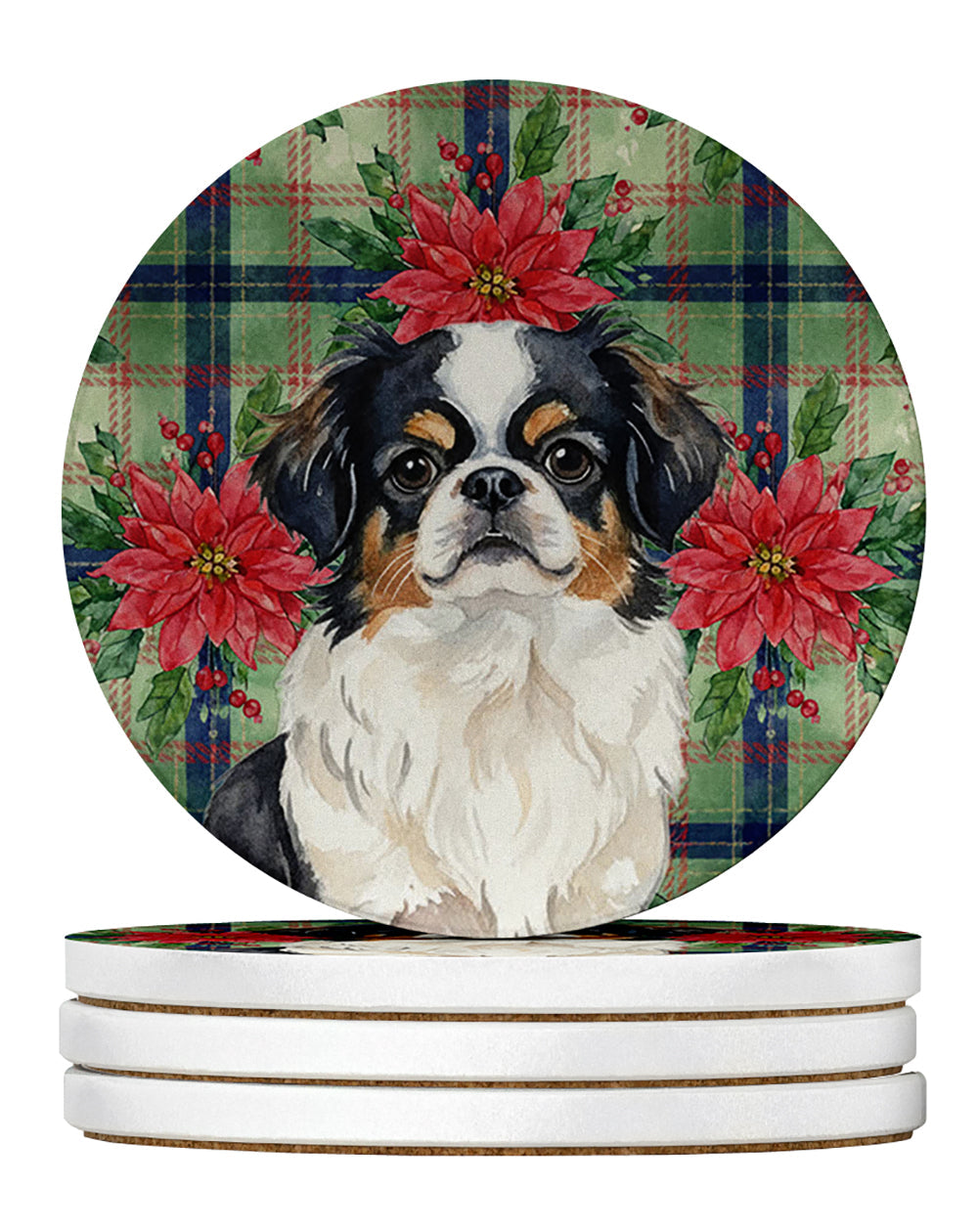 Large Sandstone Coasters Pack of 4 featuring breed specific Japanese Chin artwork. Celebrate Christmas with this Christmas Sandstone Coasters Pack of 4. Introducing Caroline's Treasures Large Sandstone Coasters Pack of 4, the perfect addition to your home decor. Each coaster measures nearly 4 inches and is made from absorbent sandstone with a cork backing. Designed and printed in the United States, these coasters feature artwork from Caroline's Treasures' talented artists. Protect your countertops and tables from hot and cold drink condensation with these absorbent coasters. They efficiently absorb moisture, ensuring your surfaces stay dry and clean. Choose from a wide range of designs to update and enhance your decor or give them as a thoughtful gift for any occasion. Cleaning is a breeze�simply wipe the coaster with a damp towel to remove any spills or stains. Each set comes in a brown gift box, making it ready to be wrapped for that special person in your life. These absorbent sandstone coasters also make an excellent housewarming gift, providing both practicality and style. Celebrate birthdays, Mother's Day, Father's Day, Thanksgiving, Christmas, Teacher's Appreciation Day, or simply show someone you care with these versatile and charming coasters. Caroline's Treasures Large Sandstone Coasters Pack of 4 is the perfect happy gift for any occasion.