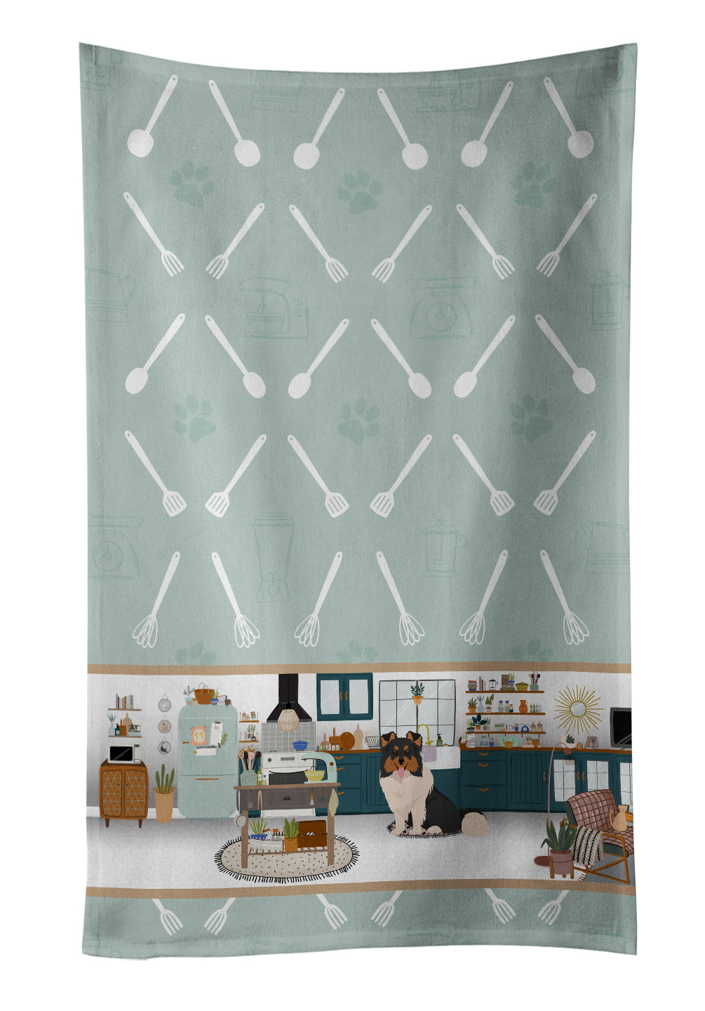 Decorate your space with our Sheltie artwork on a Kitchen Towel. Experience the perfect blend of aesthetic appeal and functional excellence with our Plush Velour Kitchen Towels. These are not your ordinary decorative kitchen towels that gather dust. Instead, they are designed to be as practical as they are stylish. The front layer of our towel is constructed from a minky plush polyester, known for its durability and color retention. Unlike conventional kitchen towels, the artwork on our towels is dyed directly into the fabric, ensuring vibrant colors that last. Polish your glassware to a brilliant sparkle using the plush front side of the towel. Flip to the back, crafted from 100% cotton terry loop, to exploit its exceptional absorbency for drying dishes or wiping down counters. Our kitchen towels redefine the concept of functional art, offering lasting quality that maintains the towel's shape over time. Measuring 15 inches by 25 inches and weighing 2.3 lbs per dozen, these towels deliver an overwhelming sensory experience with their soft, plush, and smooth texture. The edges are meticulously finished with binding, enhancing their durability and visual appeal. For your convenience, these towels are machine washable and can be dried on low heat. After the first wash, the top fabric becomes even softer and fluffier, eliminating the need for ironing. Treat your kitchen to the luxury and functionality it deserves with our plush velour kitchen towels.