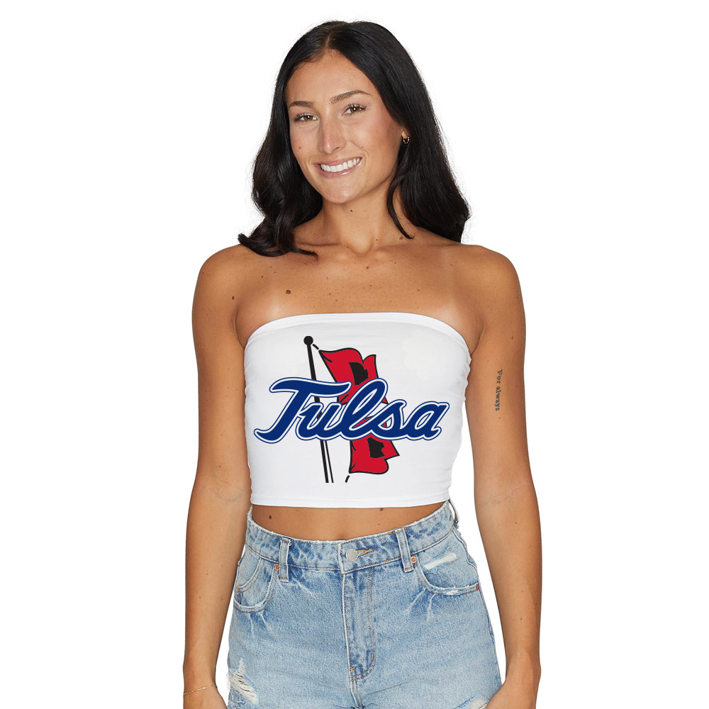 This super flattering University of Tulsa White Tube Top is perfect for college game day paired with our Red Tailgate Skirt! Our Tulsa Tube Top has the most comfortable cotton fabric. Lightweight and Comfortable. Go Golden Hurricane!