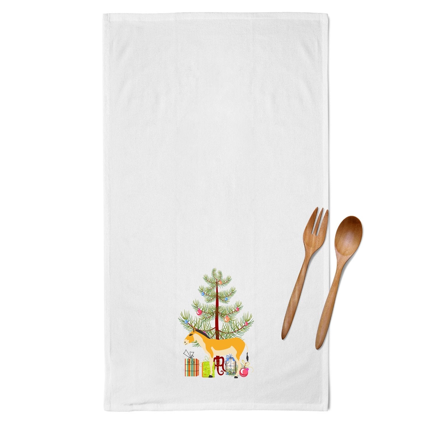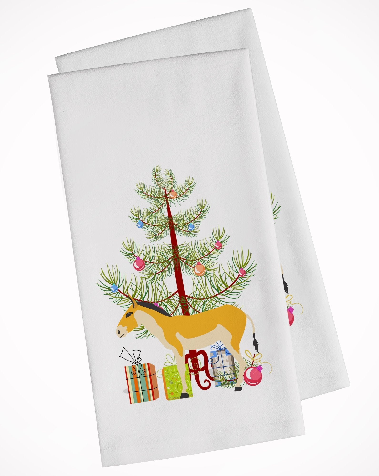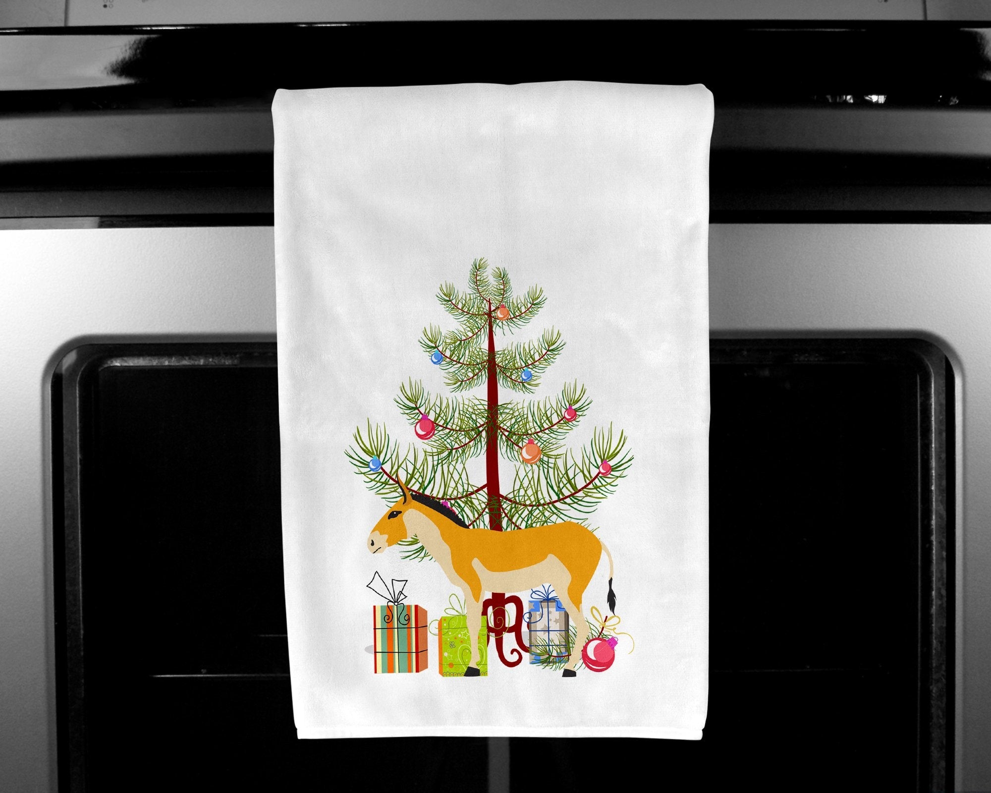 Decorate your space with our Christmas Turkmenian Kulan Donkey artwork on a Kitchen Cotton Towels. Spruce up your kitchen decor with Caroline's Treasures Decorative White Kitchen Towel Set. This set of two dish towels showcases beautiful artwork from one of our talented artists, making them both practical and visually appealing. These towels are crafted from 100% cotton, offering excellent absorbency and durability, making them ideal for any kitchen task. Each white towel measures 19 inches by 28 inches, providing ample coverage for drying dishes or wiping up spills. The standout feature of these towels is the full-color artwork design printed on each one. They can serve as a vibrant accent in your kitchen, turning a functional item into a delightful piece of decor. When it comes to care, these towels are machine washable in cold water and can be dried on low heat. Remember to always use a pressing cloth when pressing the design, and avoid using bleach on the decorated towel. The Decorative White Kitchen Towel Set makes a great gift or a stylish addition to your own kitchen.