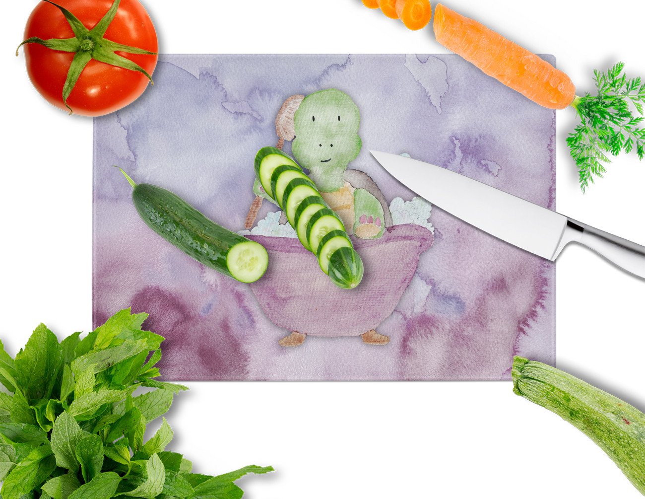 Decorate your space with our Turtle artwork on a Cutting Board. Introduce your kitchen to the vibrant, large Decorative Glass Cutting Board from Caroline's Treasures. Crafted from resilient tempered glass, this board is not only a utilitarian necessity but also a colorful art piece. With its generous dimensions of 15 inches in height and 12 inches in length, it offers ample space for all your cutting needs. Every piece showcases captivating artwork from distinguished artists, bringing an aesthetic edge to your kitchen. Beyond its attractive design, this cutting board ensures your countertop stays pristine and unscathed, owing to its heat-resistant properties. Engineered with user convenience in mind, it features non-skid feet for stability, and rounded corners for additional safety. Its robust construction renders it virtually unbreakable, guaranteeing longevity. The board comes with protective feet bumpers, maintaining its position during use. This product is recommended to be hand washed only. Proudly printed and assembled in the United States, this cutting board exemplifies superior craftsmanship. With Caroline's Treasures' Decorative Glass Cutting Board, you're investing in a blend of functionality and artistic flair.