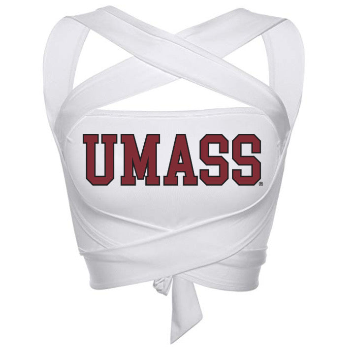 This super flattering UMass Multi Way Bandeau is perfect for college game day! Our UMass White Multi Way Bandeau has the most comfortable cotton fabric. Lightweight and Comfortable. Adjustable straps make this top the perfect option and it can be worn multiple ways! Go Minutemen!