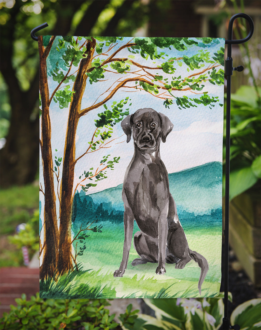 Decorate your space with our Labrador Retriever artwork on a Garden Flag. Bring a bit of Spring into your home with a Spring Garden Flag. Enhance the beauty of your garden, patio, or yard with Caroline's Treasures Decorative Garden Flag, proudly made in the USA. Crafted from two pieces of thick, double-sided polyester fabric, this 2-ply garden flag is designed to withstand various weather conditions, making it water-resistant and weatherproof. Featuring correctly readable words on both sides, this garden flag offers a delightful visual experience from any angle. With its heavier weight, it stands out among other garden flags, ensuring stability and durability even in wind, rain, and snow. Measuring approximately 11 1/4 inches by 15 1/2 inches, this flag allows you to personalize your outdoor decor. It comes with a 1 1/2-inch sleeve sewn in, allowing easy attachment to any standard garden flag stand or garden size porch hanger (sold separately). Make a statement in your outdoor space with Caroline's Treasures Decorative Garden Flag, a vibrant and high-quality flag that adds color and personality to your surroundings. Proudly made in the USA, it's a symbol of quality craftsmanship and attention to detail.