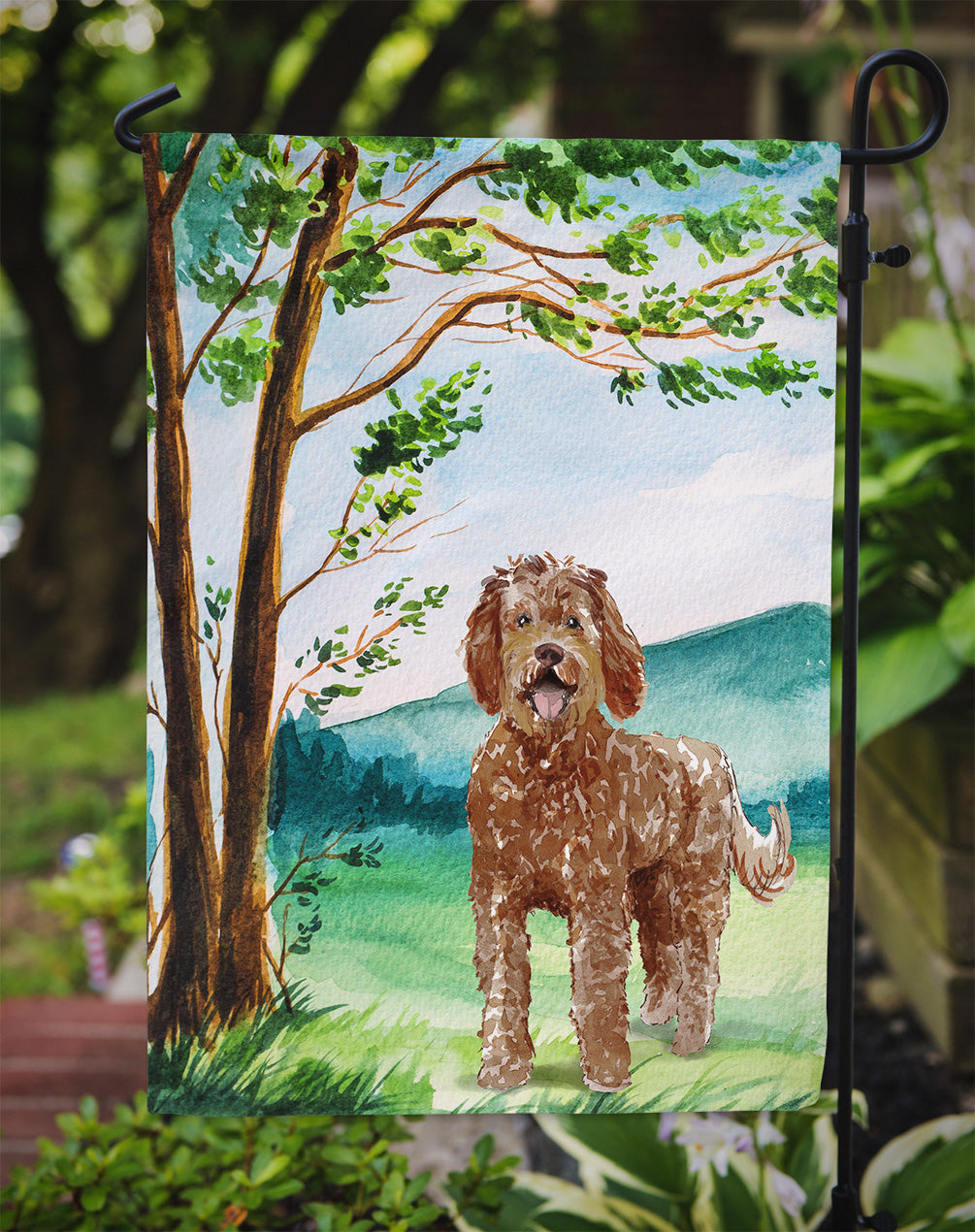 Decorate your space with our Labradoodle artwork on a Garden Flag. Bring a bit of Spring into your home with a Spring Garden Flag. Enhance the beauty of your garden, patio, or yard with Caroline's Treasures Decorative Garden Flag, proudly made in the USA. Crafted from two pieces of thick, double-sided polyester fabric, this 2-ply garden flag is designed to withstand various weather conditions, making it water-resistant and weatherproof. Featuring correctly readable words on both sides, this garden flag offers a delightful visual experience from any angle. With its heavier weight, it stands out among other garden flags, ensuring stability and durability even in wind, rain, and snow. Measuring approximately 11 1/4 inches by 15 1/2 inches, this flag allows you to personalize your outdoor decor. It comes with a 1 1/2-inch sleeve sewn in, allowing easy attachment to any standard garden flag stand or garden size porch hanger (sold separately). Make a statement in your outdoor space with Caroline's Treasures Decorative Garden Flag, a vibrant and high-quality flag that adds color and personality to your surroundings. Proudly made in the USA, it's a symbol of quality craftsmanship and attention to detail.