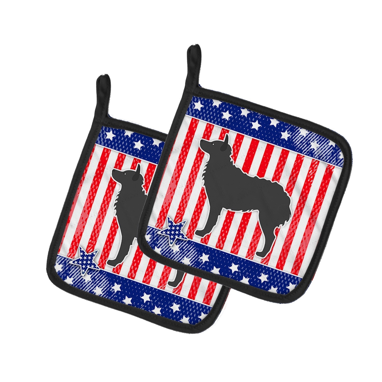 Decorate your space with our Croatian Sheepdog artwork on a Pair of Pot Holders. A Pair of Pot Holders to match your kitchen decor. Made in the USA these are thick and functional. Full color artwork decorates the front polyester fabric of the hot pad and accented by a black trim. Use these at as a trivet for your Thanksgiving or Christmas tablescape. Filled with insulated fabric and quilted for durability. These colorful pot holders will make a great gift for your favorite home cook or executive chef. Each pot holder measures approximately 7 1/2 inches by 7 1/2 inches. A hanging tab is included.