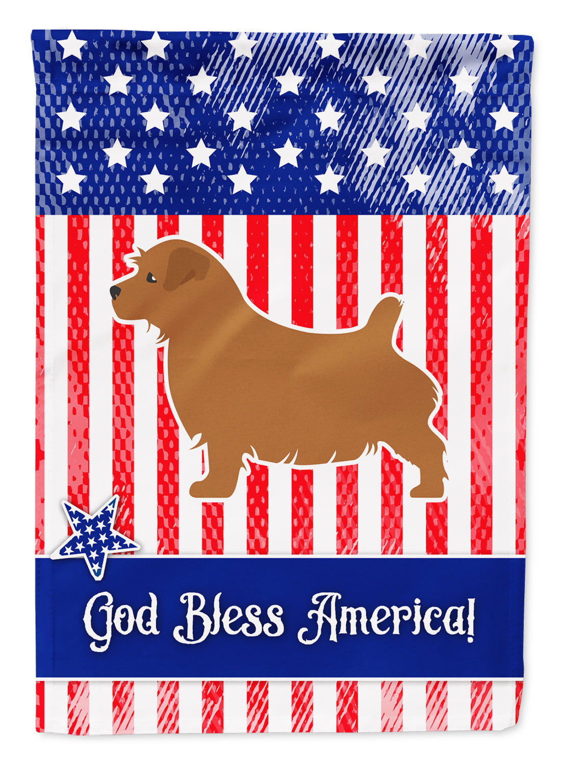 Decorate your space with our Norfolk Terrier artwork on a Garden Flag. Enhance the beauty of your garden, patio, or yard with Caroline's Treasures Decorative Garden Flag, proudly made in the USA. Crafted from two pieces of thick, double-sided polyester fabric, this 2-ply garden flag is designed to withstand various weather conditions, making it water-resistant and weatherproof. Featuring correctly readable words on both sides, this garden flag offers a delightful visual experience from any angle. With its heavier weight, it stands out among other garden flags, ensuring stability and durability even in wind, rain, and snow. Measuring approximately 11 1/4 inches by 15 1/2 inches, this flag allows you to personalize your outdoor decor. It comes with a 1 1/2-inch sleeve sewn in, allowing easy attachment to any standard garden flag stand or garden size porch hanger (sold separately). Make a statement in your outdoor space with Caroline's Treasures Decorative Garden Flag, a vibrant and high-quality flag that adds color and personality to your surroundings. Proudly made in the USA, it's a symbol of quality craftsmanship and attention to detail.