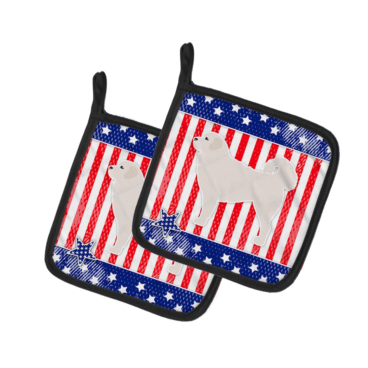 Decorate your space with our Polish Tatra Sheepdog artwork on a Pair of Pot Holders. A Pair of Pot Holders to match your kitchen decor. Made in the USA these are thick and functional. Full color artwork decorates the front polyester fabric of the hot pad and accented by a black trim. Use these at as a trivet for your Thanksgiving or Christmas tablescape. Filled with insulated fabric and quilted for durability. These colorful pot holders will make a great gift for your favorite home cook or executive chef. Each pot holder measures approximately 7 1/2 inches by 7 1/2 inches. A hanging tab is included.