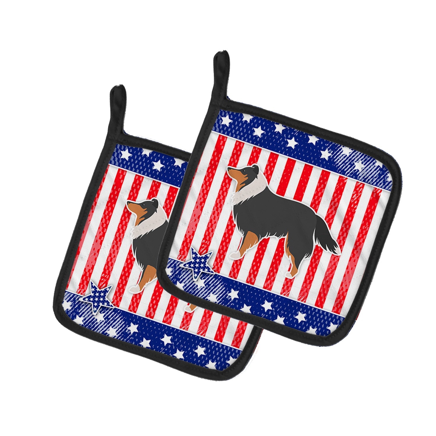 USA Patriotic Sheltie/Shetland Sheepdog Pot Holders - Set of 2 - Heat-Resistant Kitchen Essentials BB3330PTHD