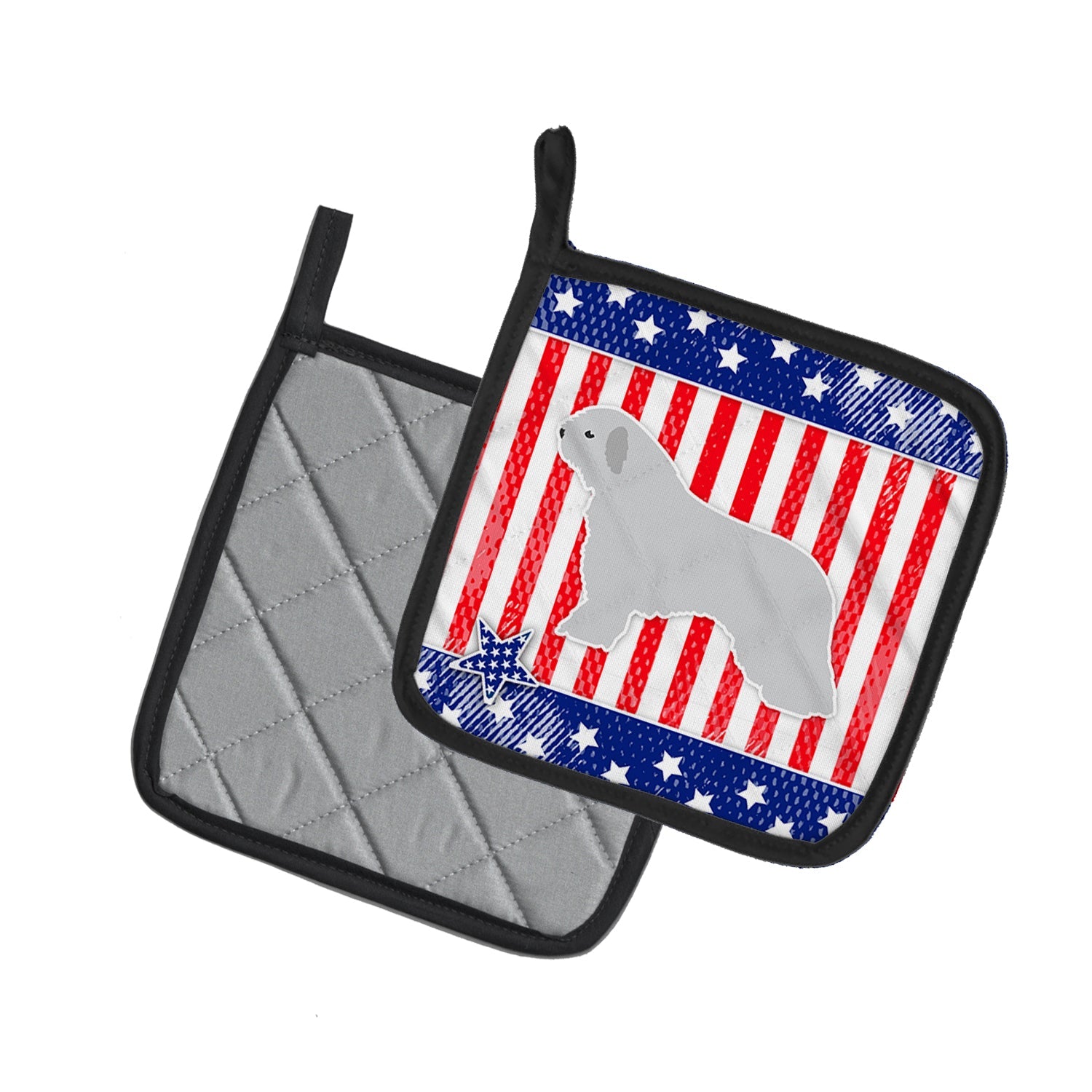 Decorate your space with our Spanish Water Dog artwork on a Pair of Pot Holders. A Pair of Pot Holders to match your kitchen decor. Made in the USA these are thick and functional. Full color artwork decorates the front polyester fabric of the hot pad and accented by a black trim. Use these at as a trivet for your Thanksgiving or Christmas tablescape. Filled with insulated fabric and quilted for durability. These colorful pot holders will make a great gift for your favorite home cook or executive chef. Each pot holder measures approximately 7 1/2 inches by 7 1/2 inches. A hanging tab is included.