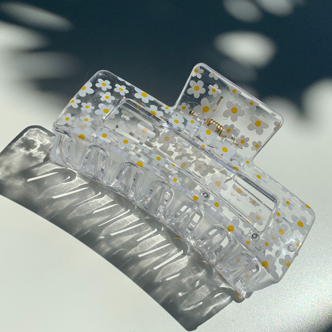 The Crystal is a lighthearted rectangular claw clip with sweet, youthful vibes.