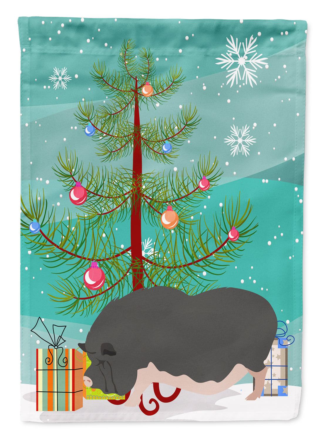 Decorate your space with our Christmas Vietnamese Pot-Bellied Pig artwork on a Garden Flag. Enhance the beauty of your garden, patio, or yard with Caroline's Treasures Decorative Garden Flag, proudly made in the USA. Crafted from two pieces of thick, double-sided polyester fabric, this 2-ply garden flag is designed to withstand various weather conditions, making it water-resistant and weatherproof. Featuring correctly readable words on both sides, this garden flag offers a delightful visual experience from any angle. With its heavier weight, it stands out among other garden flags, ensuring stability and durability even in wind, rain, and snow. Measuring approximately 11 1/4 inches by 15 1/2 inches, this flag allows you to personalize your outdoor decor. It comes with a 1 1/2-inch sleeve sewn in, allowing easy attachment to any standard garden flag stand or garden size porch hanger (sold separately). Make a statement in your outdoor space with Caroline's Treasures Decorative Garden Flag, a vibrant and high-quality flag that adds color and personality to your surroundings. Proudly made in the USA, it's a symbol of quality craftsmanship and attention to detail.