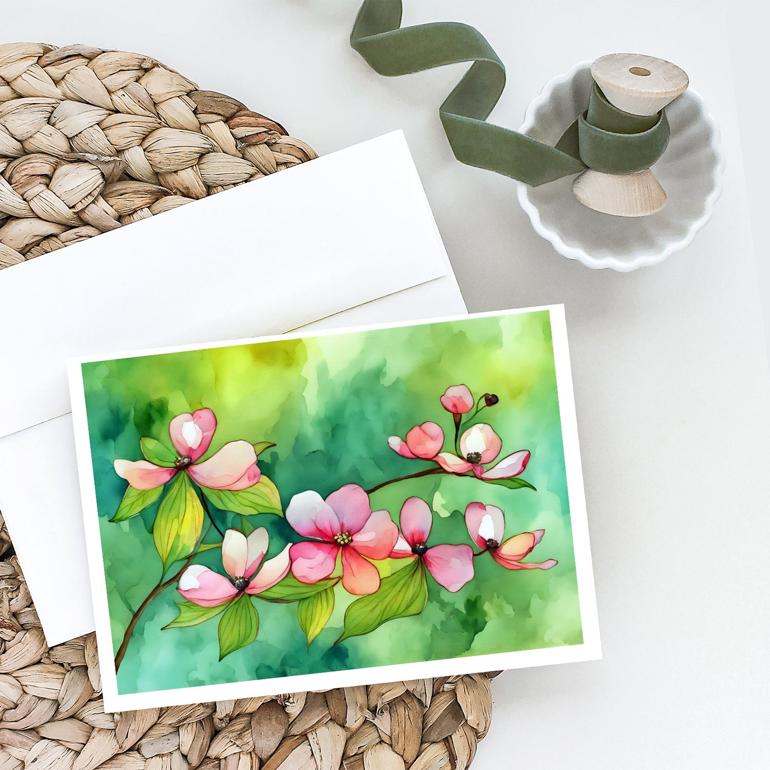 Decorate your space with our Virginia American Dogwood artwork on a . Celebrate special moments with Caroline's Treasures Printed Greeting Card Pack. This pack includes eight beautifully folded 5x7 cards, accompanied by eight matching white envelopes. With blank interiors, these cards provide ample space for your personalized messages and heartfelt holiday greetings. Each card features captivating full-color artwork, meticulously printed in our facility on high-quality 80 lb cover stock or 216 GSM. The super smooth finish of the white cards enhances the visual impact of the artwork, creating a truly stunning presentation. Designed by our talented in-house artists or licensed artists, the artwork on these cards showcases their creativity and attention to detail. From vibrant illustrations to captivating designs, each card tells its own unique story. Whether it's for birthdays, anniversaries, holidays, or any special occasion, Caroline's Treasures Greeting Card Pack is the perfect way to convey your heartfelt sentiments. Share joy, love, and warm wishes with these exquisite cards and make every moment unforgettable.