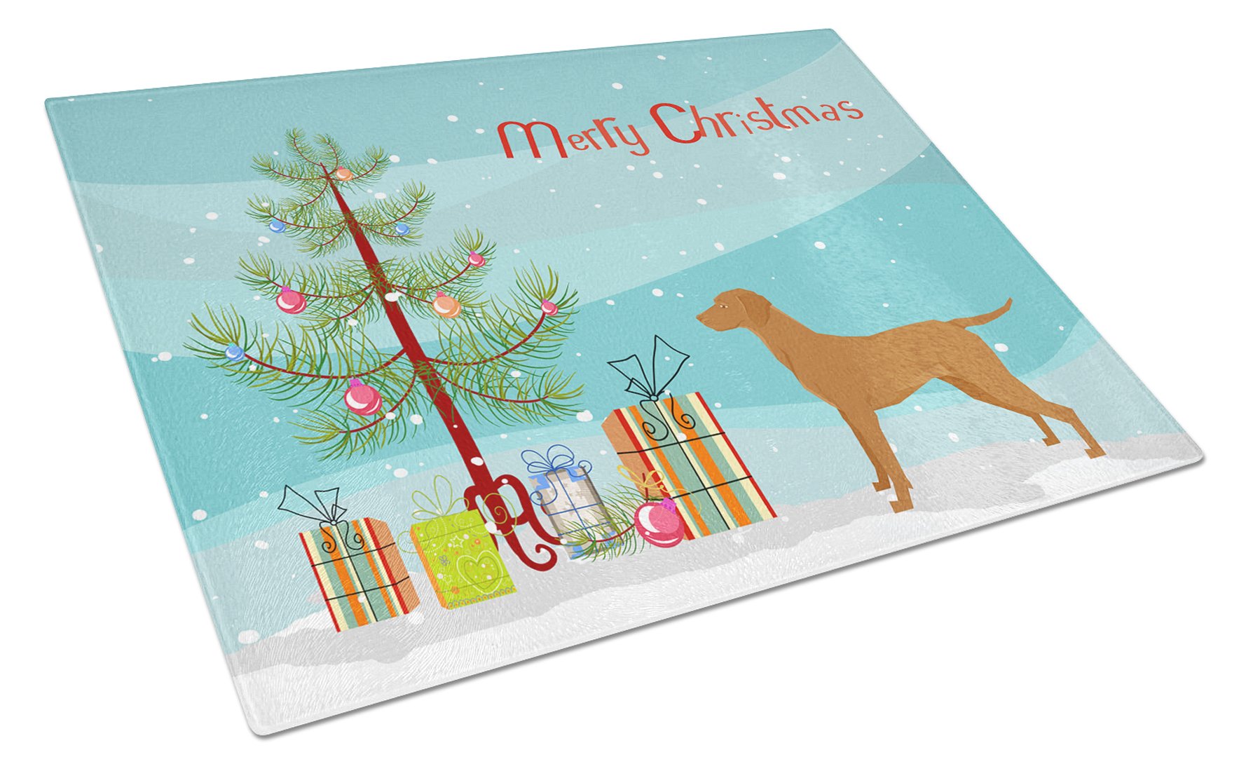 Decorate your space with our Christmas Vizsla artwork on a Cutting Board. Introduce your kitchen to the vibrant, large Decorative Glass Cutting Board from Caroline's Treasures. Crafted from resilient tempered glass, this board is not only a utilitarian necessity but also a colorful art piece. With its generous dimensions of 15 inches in height and 12 inches in length, it offers ample space for all your cutting needs. Every piece showcases captivating artwork from distinguished artists, bringing an aesthetic edge to your kitchen. Beyond its attractive design, this cutting board ensures your countertop stays pristine and unscathed, owing to its heat-resistant properties. Engineered with user convenience in mind, it features non-skid feet for stability, and rounded corners for additional safety. Its robust construction renders it virtually unbreakable, guaranteeing longevity. The board comes with protective feet bumpers, maintaining its position during use. This product is recommended to be hand washed only. Proudly printed and assembled in the United States, this cutting board exemplifies superior craftsmanship. With Caroline's Treasures' Decorative Glass Cutting Board, you're investing in a blend of functionality and artistic flair.