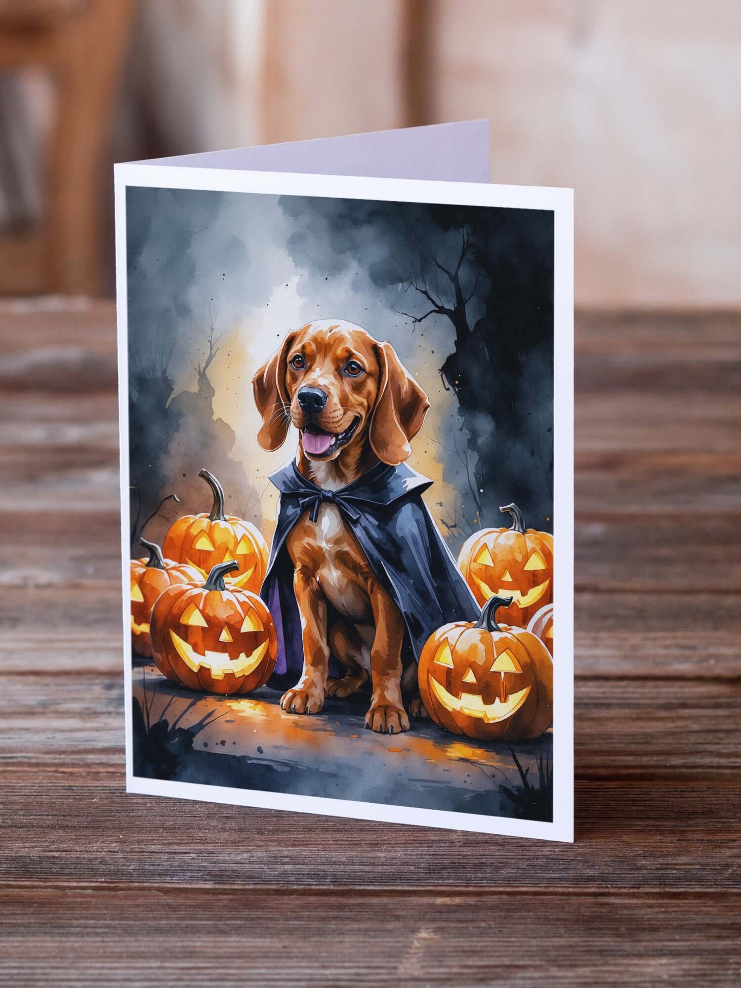 Greeting Cards Pack of 8 featuring breed specific Vizsla artwork. Celebrate Halloween with this Halloween . Celebrate special moments with Caroline's Treasures Printed Greeting Card Pack. This pack includes eight beautifully folded 5x7 cards, accompanied by eight matching white envelopes. With blank interiors, these cards provide ample space for your personalized messages and heartfelt holiday greetings. Each card features captivating full-color artwork, meticulously printed in our facility on high-quality 80 lb cover stock or 216 GSM. The super smooth finish of the white cards enhances the visual impact of the artwork, creating a truly stunning presentation. Designed by our talented in-house artists or licensed artists, the artwork on these cards showcases their creativity and attention to detail. From vibrant illustrations to captivating designs, each card tells its own unique story. Whether it's for birthdays, anniversaries, holidays, or any special occasion, Caroline's Treasures Greeting Card Pack is the perfect way to convey your heartfelt sentiments. Share joy, love, and warm wishes with these exquisite cards and make every moment unforgettable.