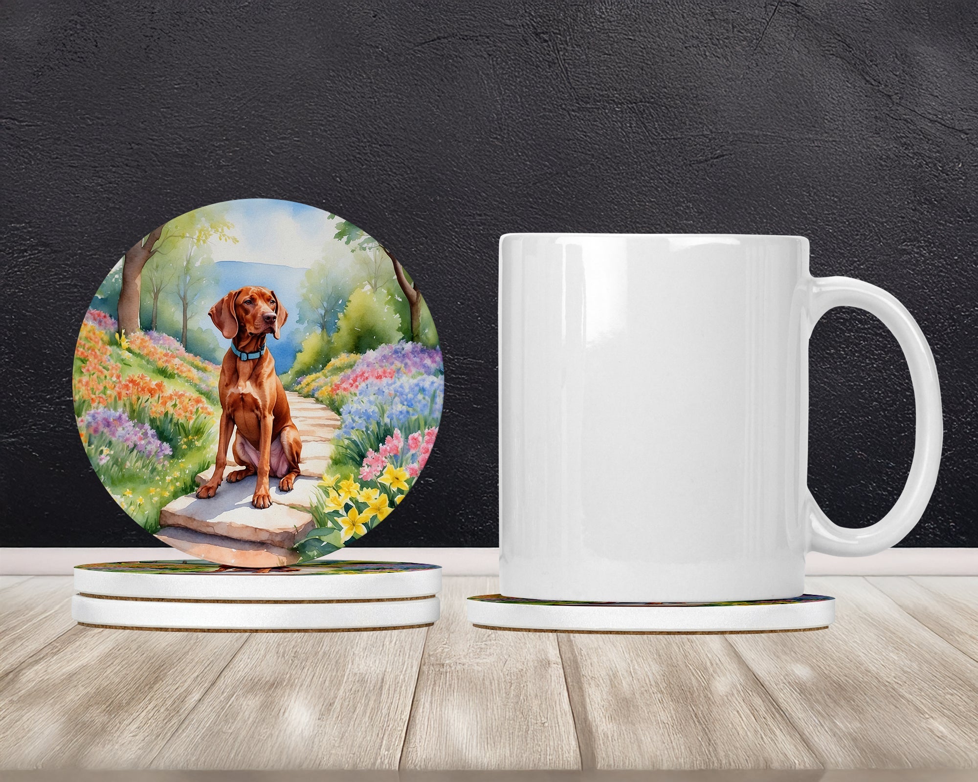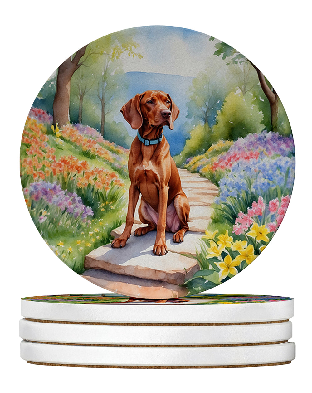 Large Sandstone Coasters Pack of 4 featuring breed specific Vizsla artwork. Introducing Caroline's Treasures Large Sandstone Coasters Pack of 4, the perfect addition to your home decor. Each coaster measures nearly 4 inches and is made from absorbent sandstone with a cork backing. Designed and printed in the United States, these coasters feature artwork from Caroline's Treasures' talented artists. Protect your countertops and tables from hot and cold drink condensation with these absorbent coasters. They efficiently absorb moisture, ensuring your surfaces stay dry and clean. Choose from a wide range of designs to update and enhance your decor or give them as a thoughtful gift for any occasion. Cleaning is a breeze—simply wipe the coaster with a damp towel to remove any spills or stains. Each set comes in a brown gift box, making it ready to be wrapped for that special person in your life. These absorbent sandstone coasters also make an excellent housewarming gift, providing both practicality and style. Celebrate birthdays, Mother's Day, Father's Day, Thanksgiving, Christmas, Teacher's Appreciation Day, or simply show someone you care with these versatile and charming coasters. Caroline's Treasures Large Sandstone Coasters Pack of 4 is the perfect happy gift for any occasion.