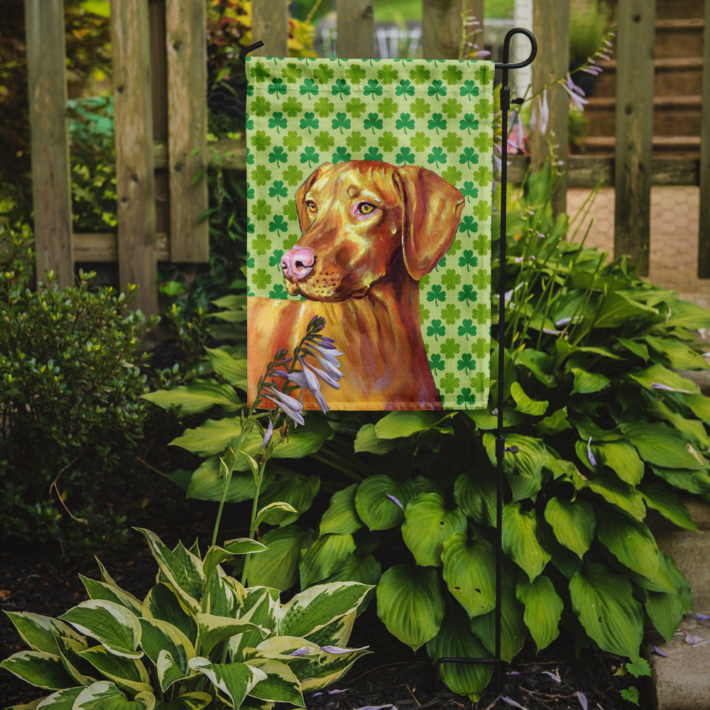 Decorate your space with our St Patrick's Day Vizsla artwork on a Garden Flag. Enhance the beauty of your garden, patio, or yard with Caroline's Treasures Decorative Garden Flag, proudly made in the USA. Crafted from two pieces of thick, double-sided polyester fabric, this 2-ply garden flag is designed to withstand various weather conditions, making it water-resistant and weatherproof. Featuring correctly readable words on both sides, this garden flag offers a delightful visual experience from any angle. With its heavier weight, it stands out among other garden flags, ensuring stability and durability even in wind, rain, and snow. Measuring approximately 11 1/4 inches by 15 1/2 inches, this flag allows you to personalize your outdoor decor. It comes with a 1 1/2-inch sleeve sewn in, allowing easy attachment to any standard garden flag stand or garden size porch hanger (sold separately). Make a statement in your outdoor space with Caroline's Treasures Decorative Garden Flag, a vibrant and high-quality flag that adds color and personality to your surroundings. Proudly made in the USA, it's a symbol of quality craftsmanship and attention to detail.