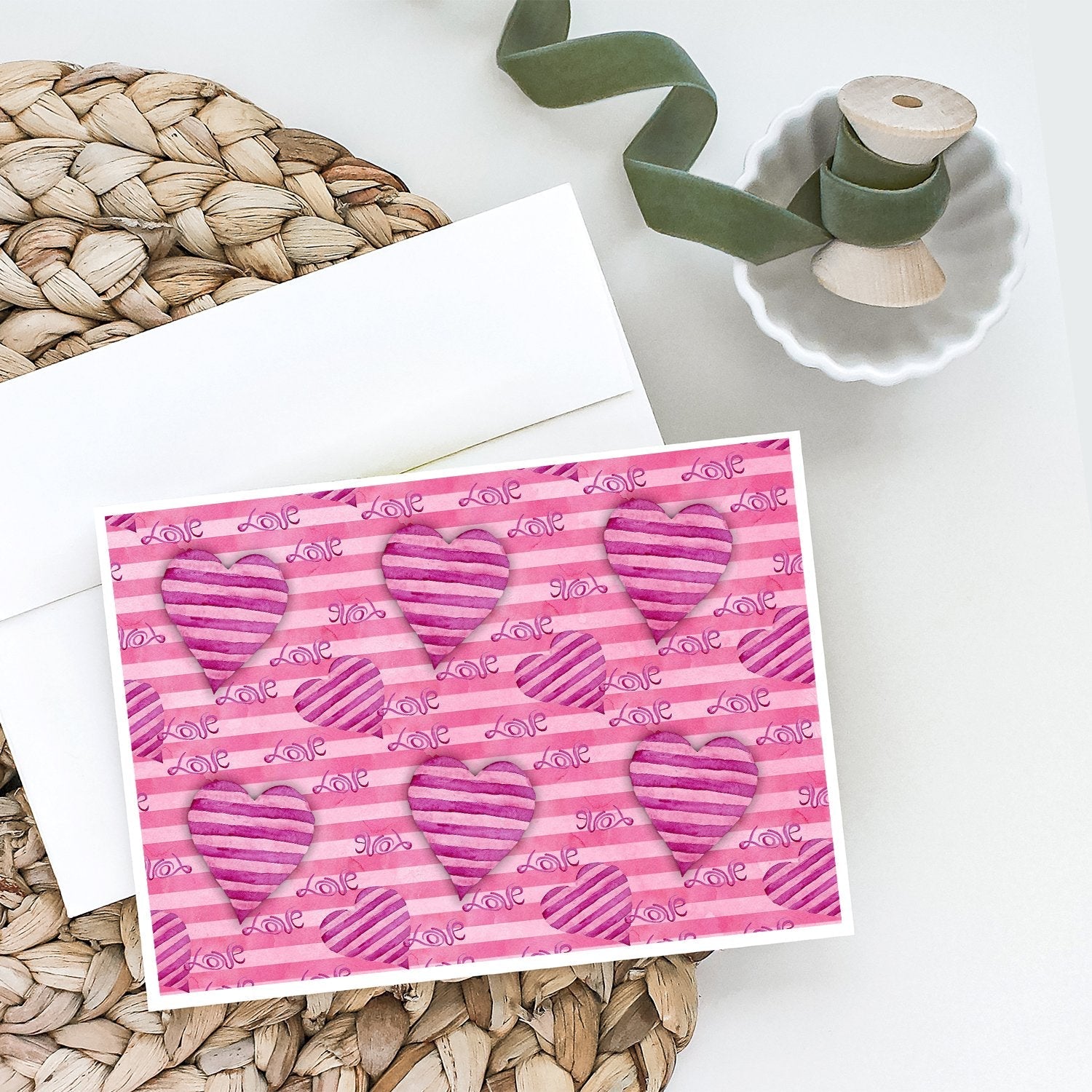 Watercolor Hot Pink Striped Hearts Greeting Cards -  Blank Note Cards – 8-Pack of Artist-Designed Cards with Envelopes