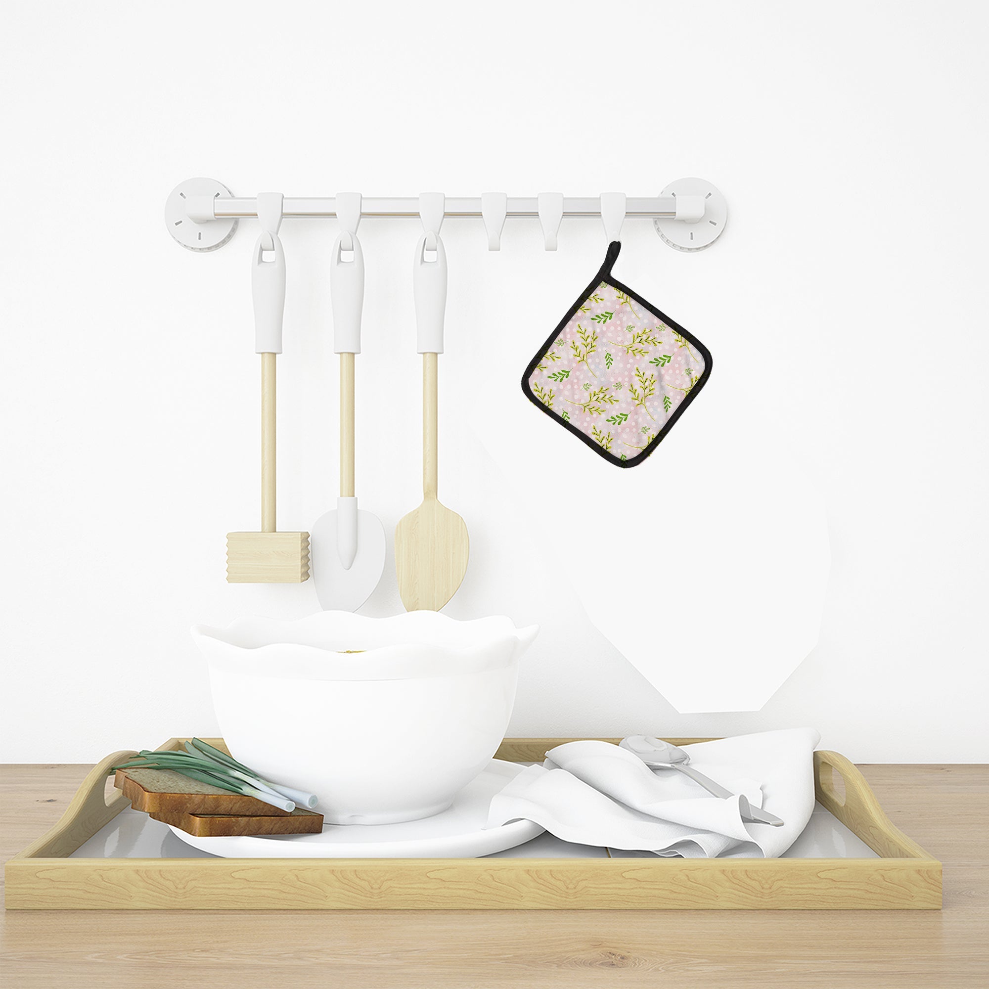 Watercolor Leaves Pink Pot Holders - Set of 2 - Heat-Resistant Kitchen Essentials BB7480PTHD