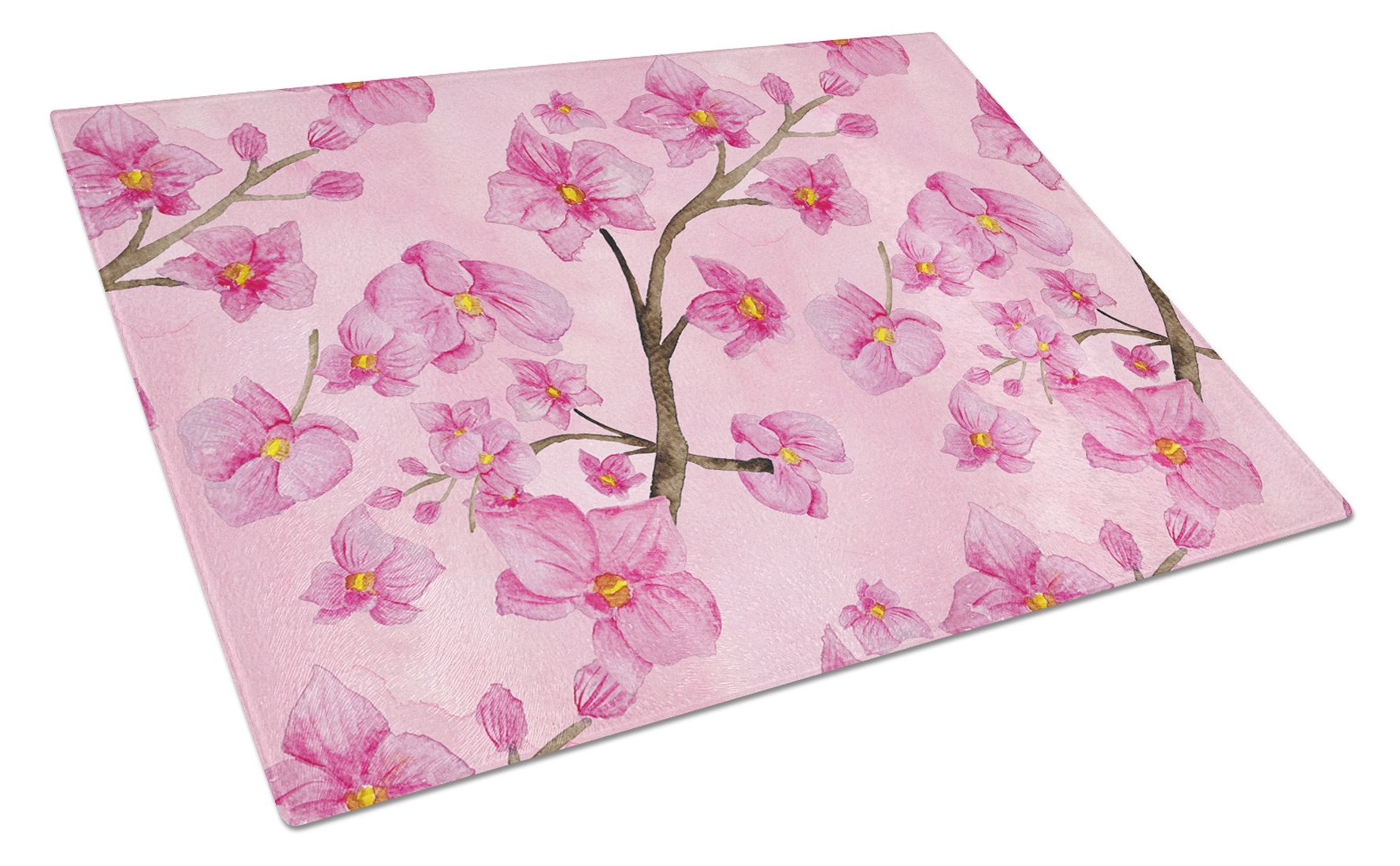 Watercolor Pink Flowers Glass Cutting Boards – Durable, Decorative Kitchen Art Large BB7505LCB
