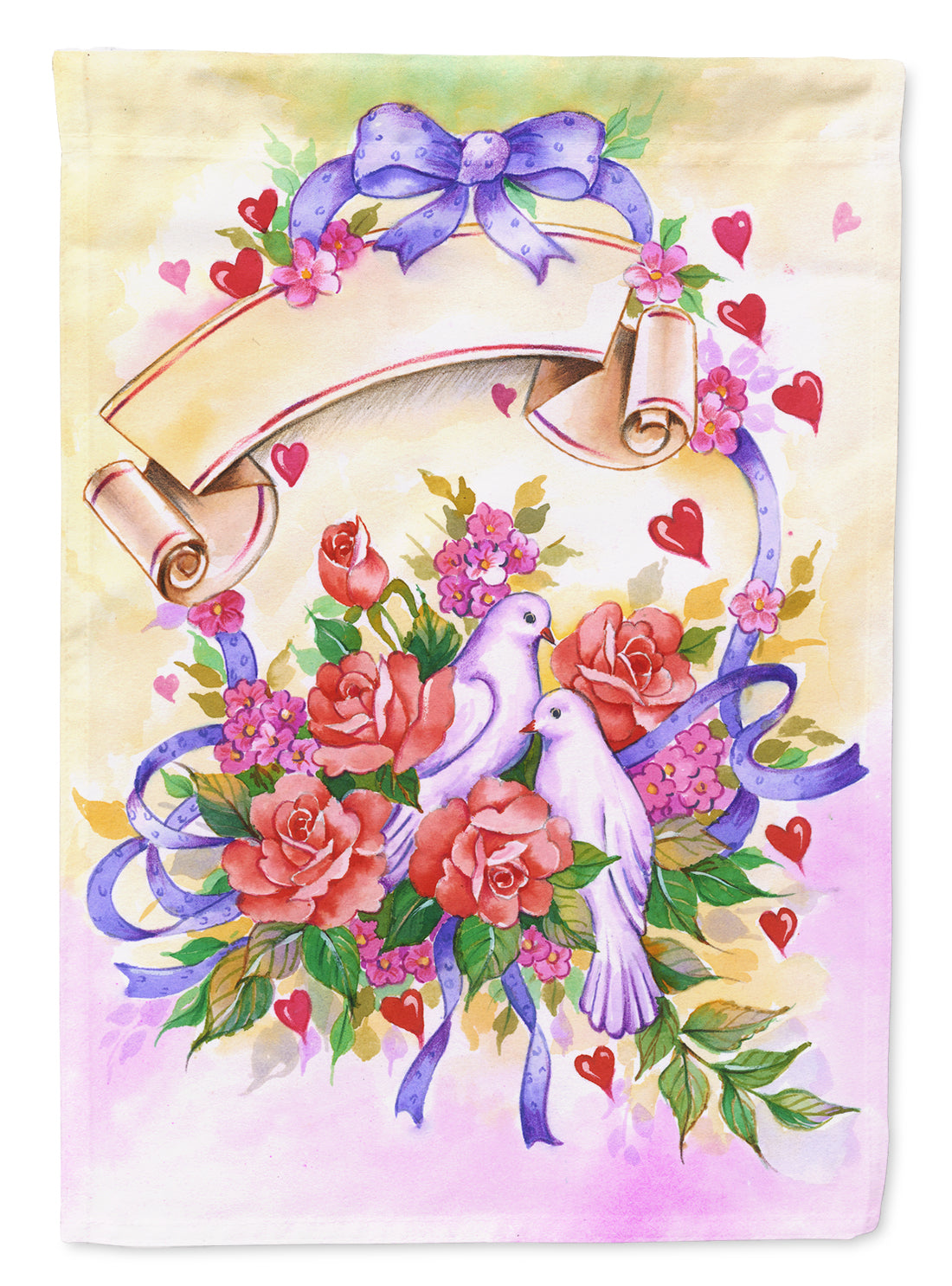 Decorate your space with our Wedding artwork on a Garden Flag. Enhance the beauty of your garden, patio, or yard with Caroline's Treasures Decorative Garden Flag, proudly made in the USA. Crafted from two pieces of thick, double-sided polyester fabric, this 2-ply garden flag is designed to withstand various weather conditions, making it water-resistant and weatherproof. Featuring correctly readable words on both sides, this garden flag offers a delightful visual experience from any angle. With its heavier weight, it stands out among other garden flags, ensuring stability and durability even in wind, rain, and snow. Measuring approximately 11 1/4 inches by 15 1/2 inches, this flag allows you to personalize your outdoor decor. It comes with a 1 1/2-inch sleeve sewn in, allowing easy attachment to any standard garden flag stand or garden size porch hanger (sold separately). Make a statement in your outdoor space with Caroline's Treasures Decorative Garden Flag, a vibrant and high-quality flag that adds color and personality to your surroundings. Proudly made in the USA, it's a symbol of quality craftsmanship and attention to detail.