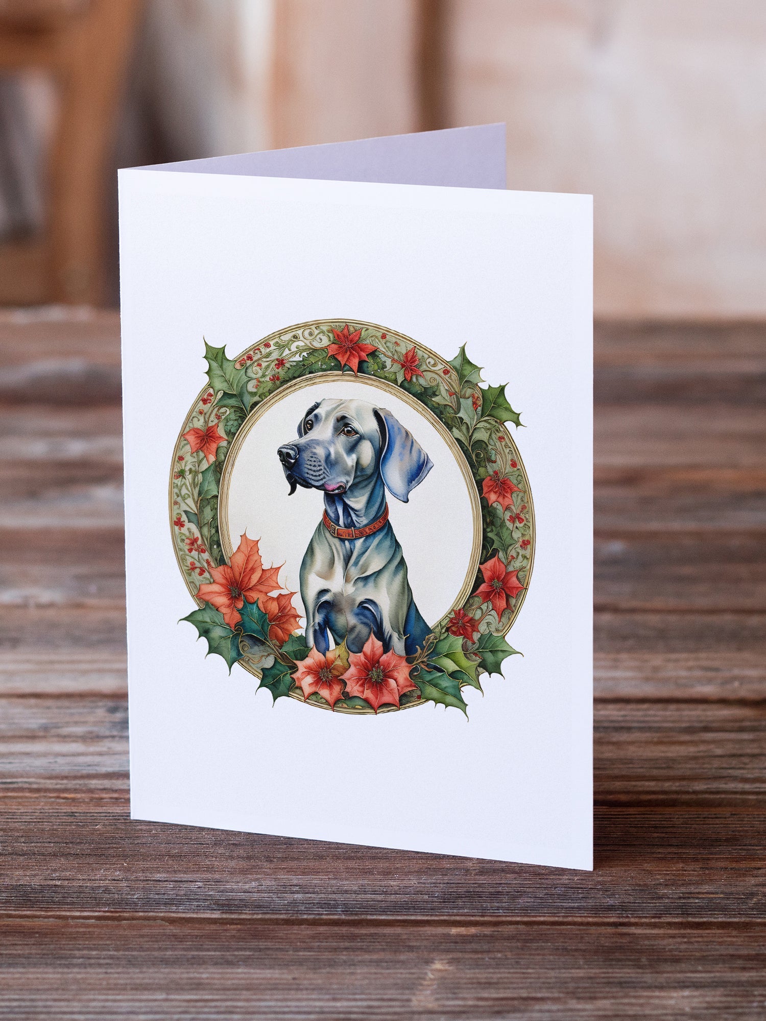 Decorate your space with our Christmas Weimaraner artwork on a . Bring a bit of Winter into your home with a Winter . Celebrate special moments with Caroline's Treasures Printed Greeting Card Pack. This pack includes eight beautifully folded 5x7 cards, accompanied by eight matching white envelopes. With blank interiors, these cards provide ample space for your personalized messages and heartfelt holiday greetings. Each card features captivating full-color artwork, meticulously printed in our facility on high-quality 80 lb cover stock or 216 GSM. The super smooth finish of the white cards enhances the visual impact of the artwork, creating a truly stunning presentation. Designed by our talented in-house artists or licensed artists, the artwork on these cards showcases their creativity and attention to detail. From vibrant illustrations to captivating designs, each card tells its own unique story. Whether it's for birthdays, anniversaries, holidays, or any special occasion, Caroline's Treasures Greeting Card Pack is the perfect way to convey your heartfelt sentiments. Share joy, love, and warm wishes with these exquisite cards and make every moment unforgettable.