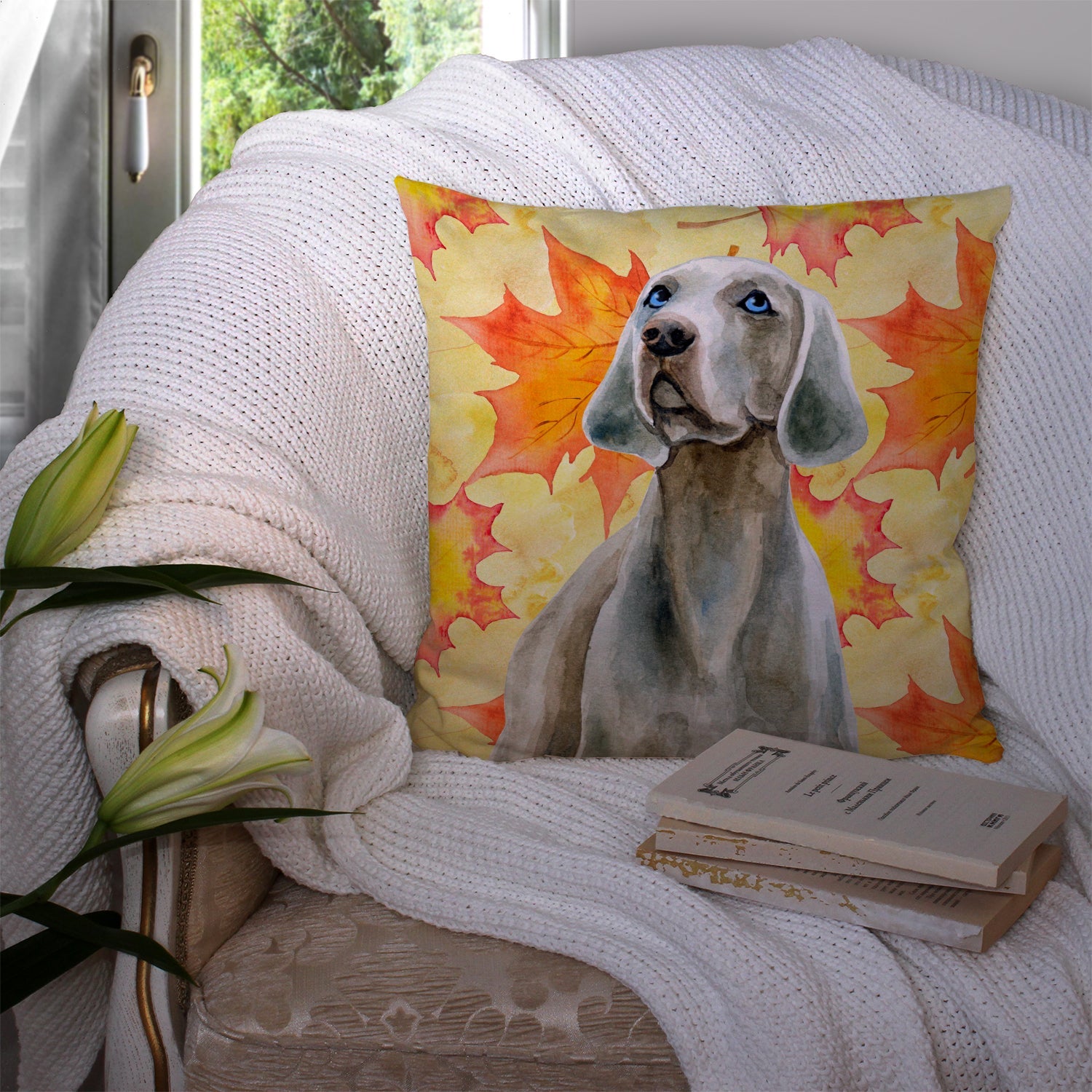 Decorate your space with our Weimaraner artwork on a Pillow. Add a touch of vibrancy and comfort to your outdoor seating with Caroline's Treasures Fabric Decorative Pillow. Measuring approximately 14 inches by 14 inches, this outdoor pillow is crafted to elevate the appeal of your patio furniture, infusing it with vivid color and artistic flair. The pillow includes a 100% Polyester Fabric sham filled with a quality pillow form to provide superior comfort. Innovatively made from our brand new material, specifically woven for its water resistance, this pillow is designed for durability. The soft canvas fabric offers versatility in use, fit for your indoor couch or your outdoor patio, porch, or veranda. The fabric is dyed with colorfast dyes built for resilience against weather conditions, ensuring the pillow retains its beauty over time. Constructed by sewing three fabric pieces to create a sham, the polyester insert is then nestled inside to form the pillow, resulting in an overstuffed pillow that maintains its shape. Both the sham and the pillow insert are proudly made in the United States. As the pillows are handcrafted, there may be minor variations in size, further enhancing their unique charm. Experience comfort in style with Caroline's Treasures Fabric Decorative Pillow.