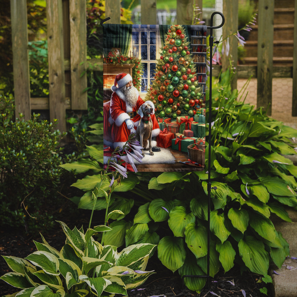 Bring a festive, canine-inspired charm to your garden with this breed specific dog and Santa Claus Garden Flag. Featuring a heartwarming ‘Moments with Santa Claus’ scene, this durable, weather-resistant flag is perfect for any dog lover’s holiday decor. Whether for personal use or as a thoughtful gift, this festive yard flag adds a cozy, seasonal touch to any outdoor space. Ideal for pet-friendly homes, it captures the holiday spirit while showcasing your love for dogs.Decorate your space with our Christmas Weimaraner artwork on a Garden Flag. Enhance the beauty of your garden, patio, or yard with Caroline's Treasures Decorative Garden Flag, proudly made in the USA. Crafted from two pieces of thick, double-sided polyester fabric, this 2-ply garden flag is designed to withstand various weather conditions, making it water-resistant and weatherproof. Featuring correctly readable words on both sides, this garden flag offers a delightful visual experience from any angle. With its heavier weight, it stands out among other garden flags, ensuring stability and durability even in wind, rain, and snow. Measuring approximately 11 1/4 inches by 15 1/2 inches, this flag allows you to personalize your outdoor decor. It comes with a 1 1/2-inch sleeve sewn in, allowing easy attachment to any standard garden flag stand or garden size porch hanger (sold separately). Make a statement in your outdoor space with Caroline's Treasures Decorative Garden Flag, a vibrant and high-quality flag that adds color and personality to your surroundings. Proudly made in the USA, it's a symbol of quality craftsmanship and attention to detail.