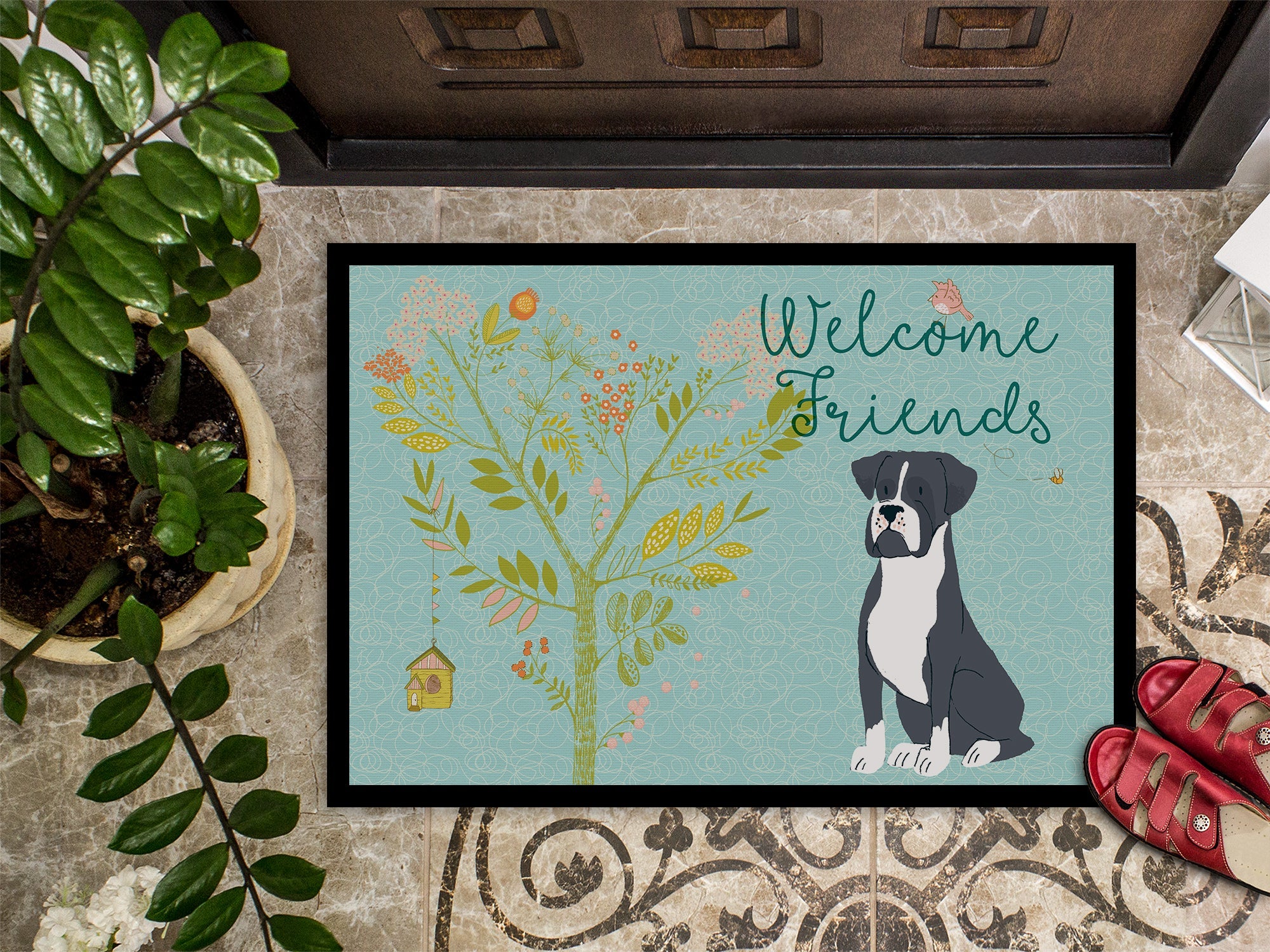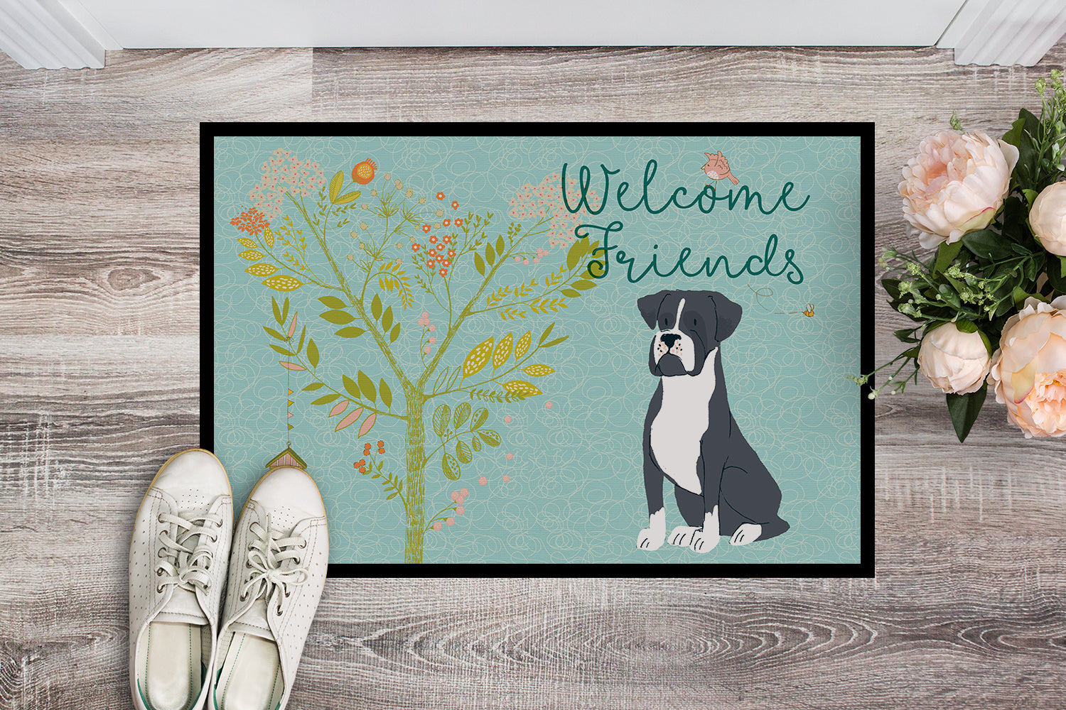 Welcome Friends Black Boxer Doormat - 24x36 Decorative Floor Mat – Indoor/Outdoor Rug with Artistic Flair BB7581JMAT