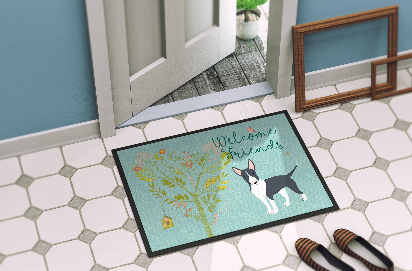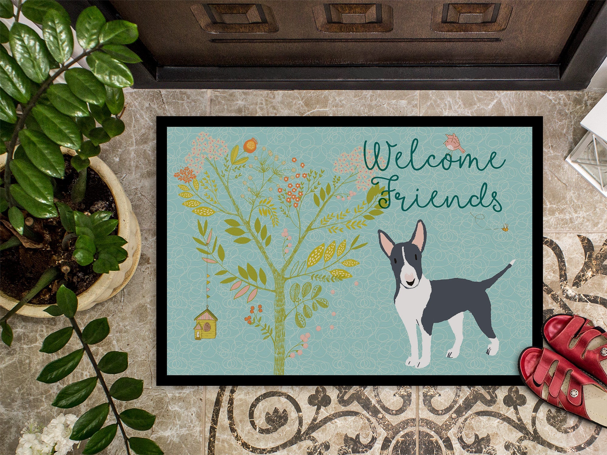 Welcome Friends Black Bull Terrier Doormat - 24x36 Decorative Floor Mat – Indoor/Outdoor Rug with Artistic Flair BB7604JMAT