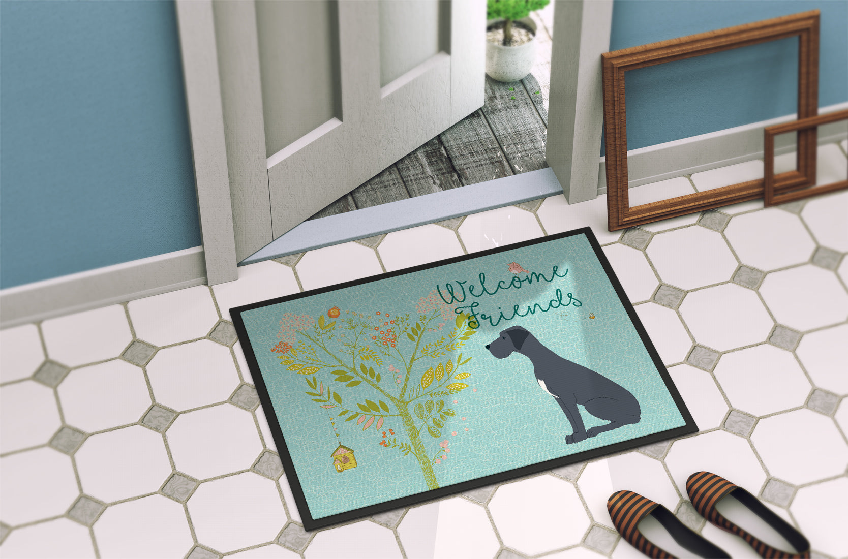 Welcome Friends Black Great Dane Doormat - 18x27 Decorative Floor Mat – Indoor/Outdoor Rug with Artistic Flair BB7587MAT