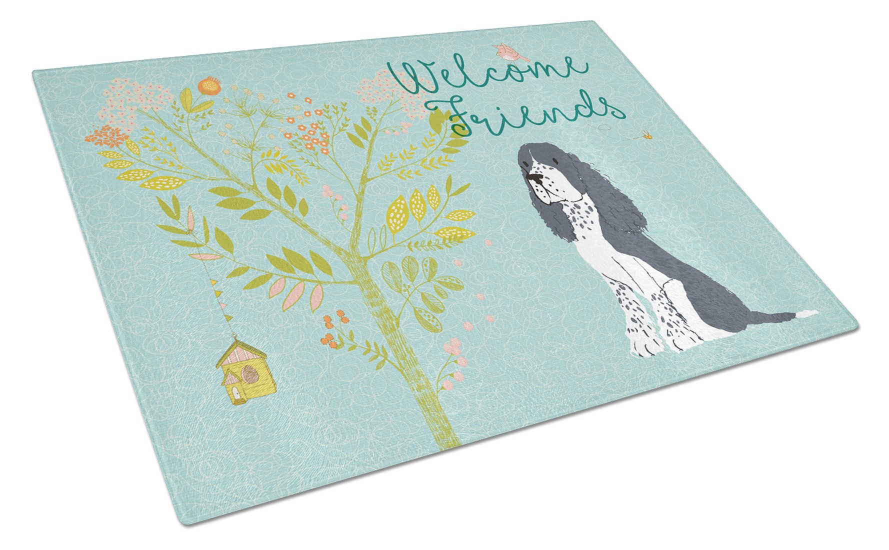 Welcome Friends Black Springer Spaniel Glass Cutting Boards – Durable, Decorative Kitchen Art Large BB7621LCB