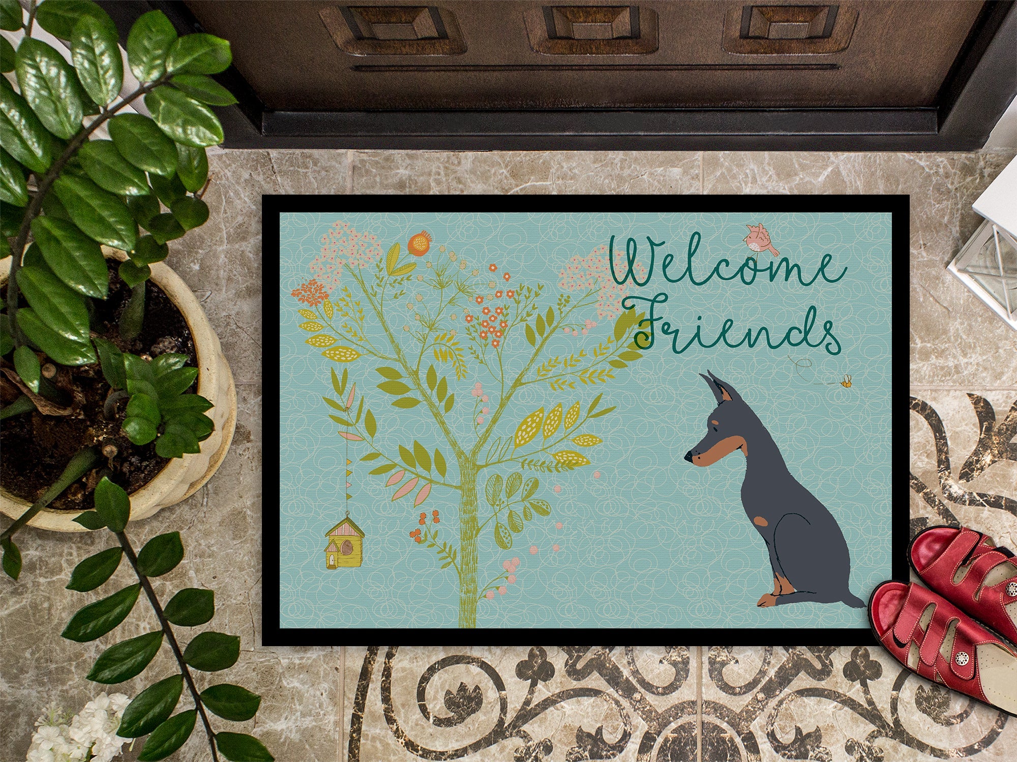 Welcome Friends Doberman Pinscher Doormat - 24x36 Decorative Floor Mat – Indoor/Outdoor Rug with Artistic Flair BB7586JMAT