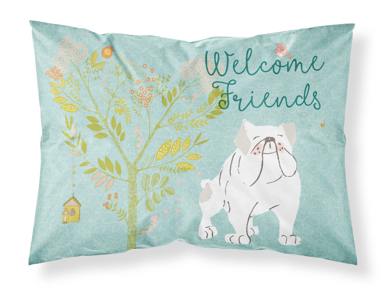Welcome Friends English Bulldog White Fabric Standard Pillowcase – Artistic Decorative Front, White Back BB7603PILLOWCASE