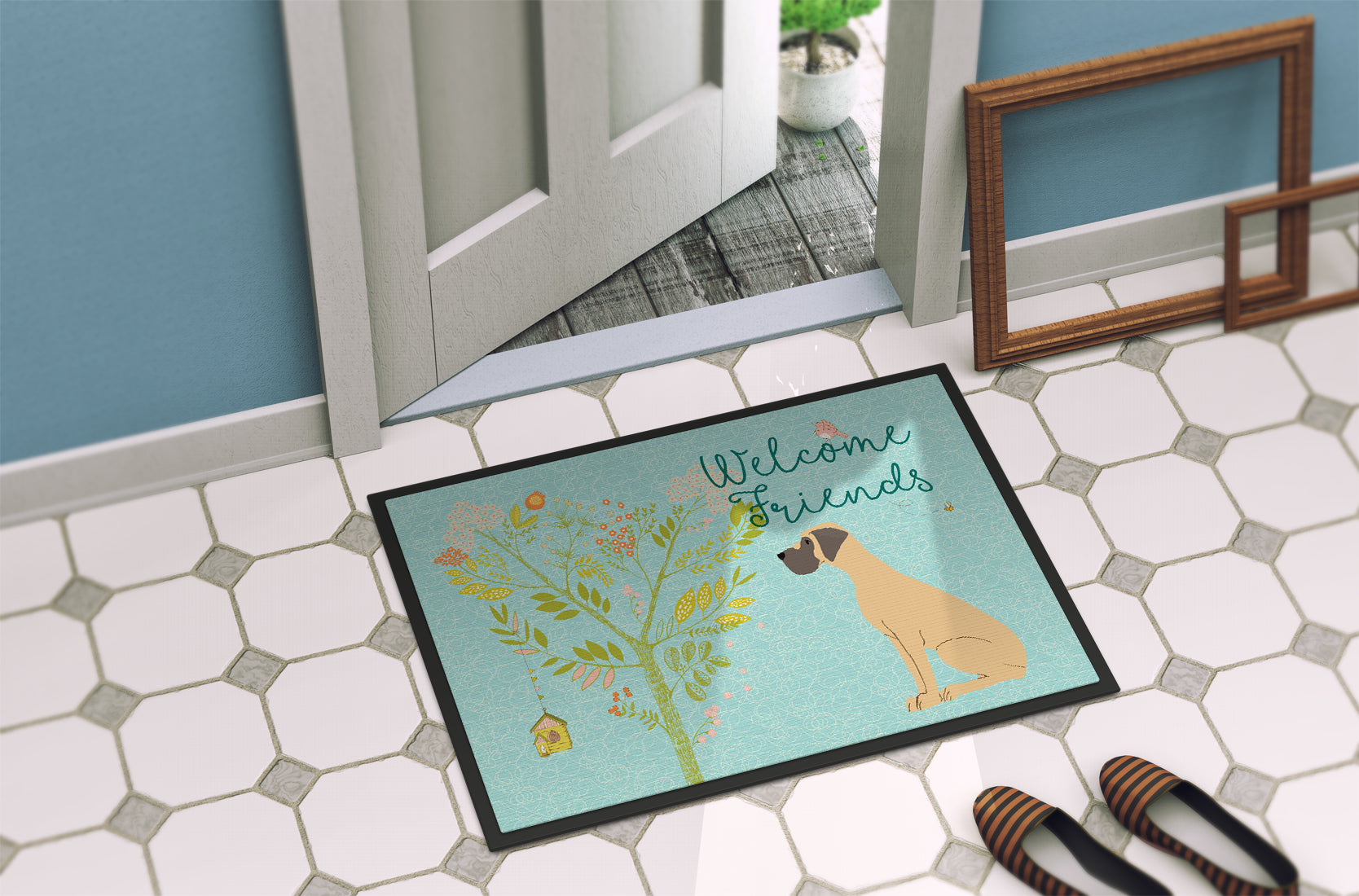 Decorate your space with our Great Dane artwork on a Doormat. Welcome your guests in style with our Artwork Door Mat, designed to withstand almost any weather condition. This mat, measuring approximately 24 by 36 inches, is held together by durable black binding tape. Its top layer, composed of polyester felt, is dyed with the eye-catching image you see on the mat. A few layers below provide the mat with stability, while its rubber bottom is stamped to help prevent slipping and ensures safety. Our mat works wonderfully as both an indoor or outdoor door mat. For cleaning, simply hose it off with water or use a power washer - no need for any cleaner that produces suds. Avoid scrubbing with a brush, instead, opt for the vacuum on floor setting. Designed manufactured and printed in the USA, this mat is a perfect addition to your porch, outdoor kitchen, entryway, or any indoor space. Its unique design makes it a charming decorative rug that greets your guests and adds a stylish touch to your home decor.