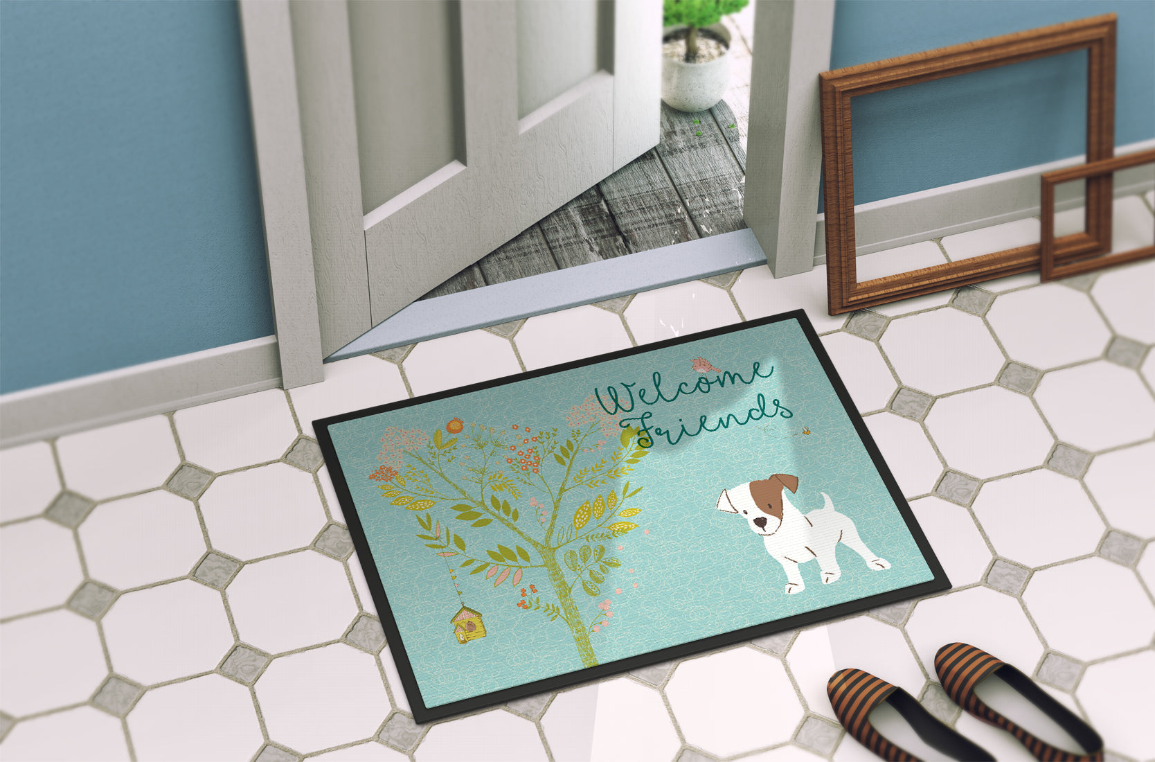 Welcome Friends Jack Russell Terrier Puppy Doormat - 18x27 Decorative Floor Mat – Indoor/Outdoor Rug with Artistic Flair BB7637MAT