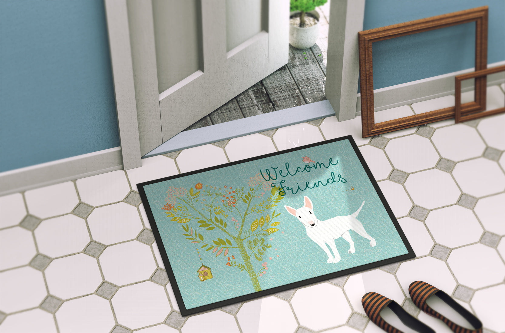 Welcome Friends White Bull Terrier Doormat - 24x36 Decorative Floor Mat – Indoor/Outdoor Rug with Artistic Flair BB7606JMAT