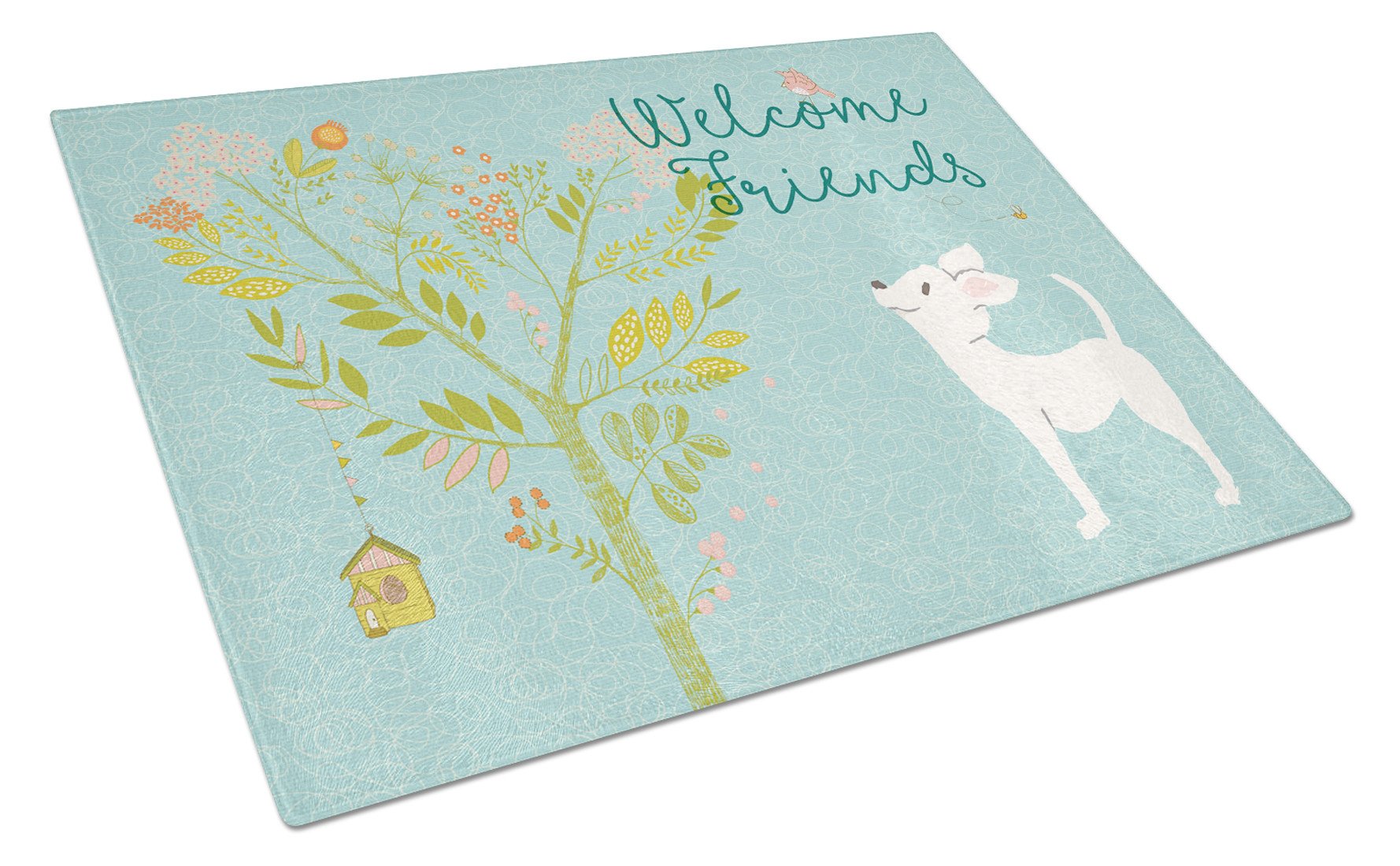 Welcome Friends White Chihuahua Glass Cutting Boards – Durable, Decorative Kitchen Art Large BB7629LCB