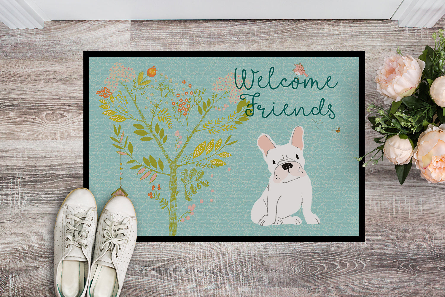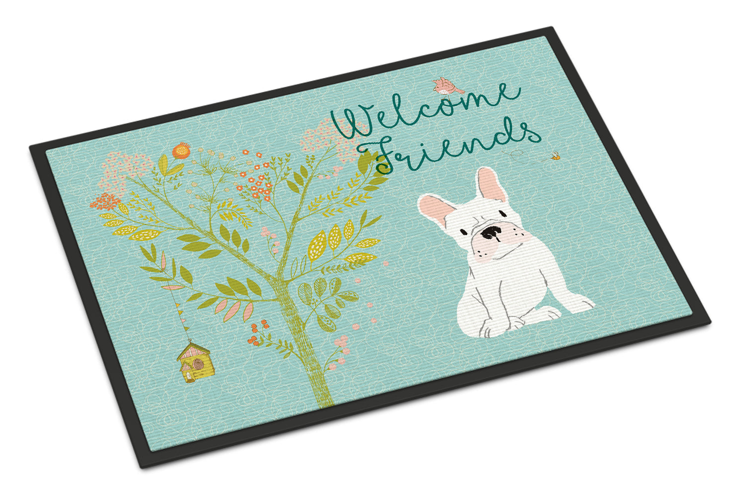 Decorate your space with our French Bulldog artwork on a Doormat. Welcome your guests in style with our Artwork Door Mat, designed to withstand almost any weather condition. This mat, measuring approximately 24 by 36 inches, is held together by durable black binding tape. Its top layer, composed of polyester felt, is dyed with the eye-catching image you see on the mat. A few layers below provide the mat with stability, while its rubber bottom is stamped to help prevent slipping and ensures safety. Our mat works wonderfully as both an indoor or outdoor door mat. For cleaning, simply hose it off with water or use a power washer - no need for any cleaner that produces suds. Avoid scrubbing with a brush, instead, opt for the vacuum on floor setting. Designed manufactured and printed in the USA, this mat is a perfect addition to your porch, outdoor kitchen, entryway, or any indoor space. Its unique design makes it a charming decorative rug that greets your guests and adds a stylish touch to your home decor.